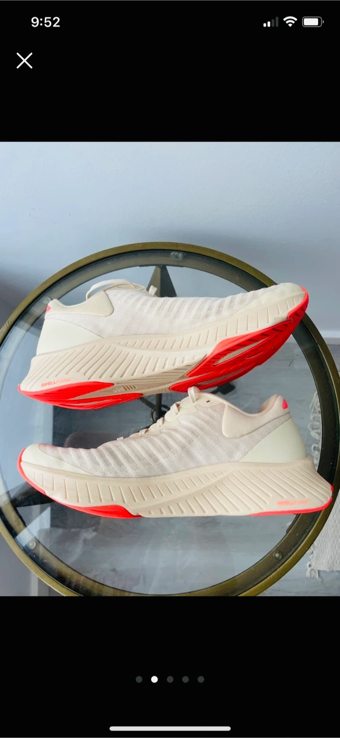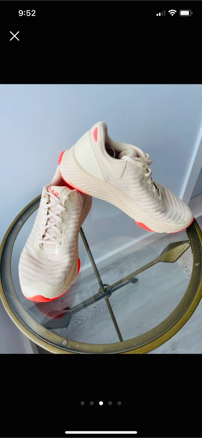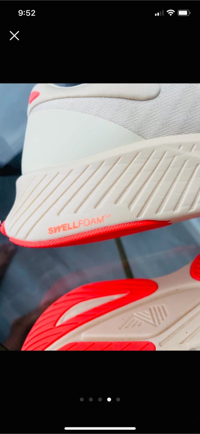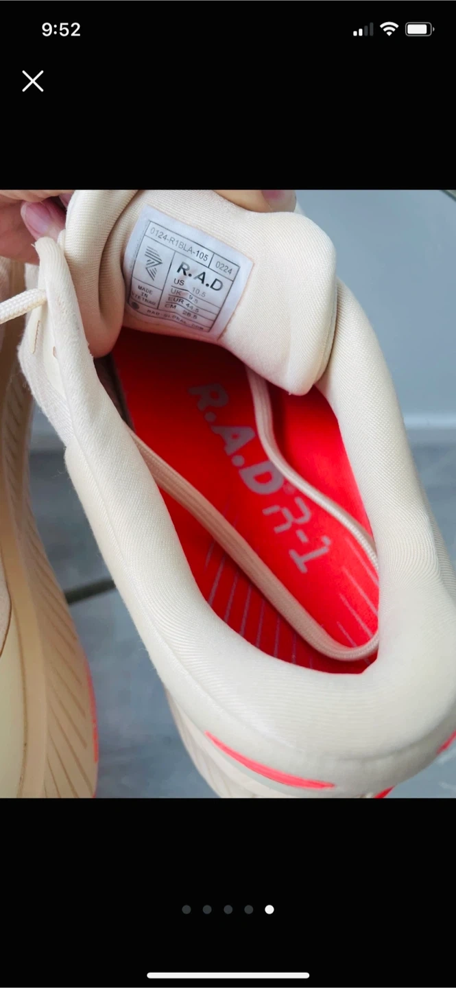 Selling a pair of R.A.D R-1 running shoes in US size 10.5. They feature SwellFoam technology and have a stylish design with a beige upper and coral accents. Great for running or everyday wear! Comes from a pet free, smoke-free home