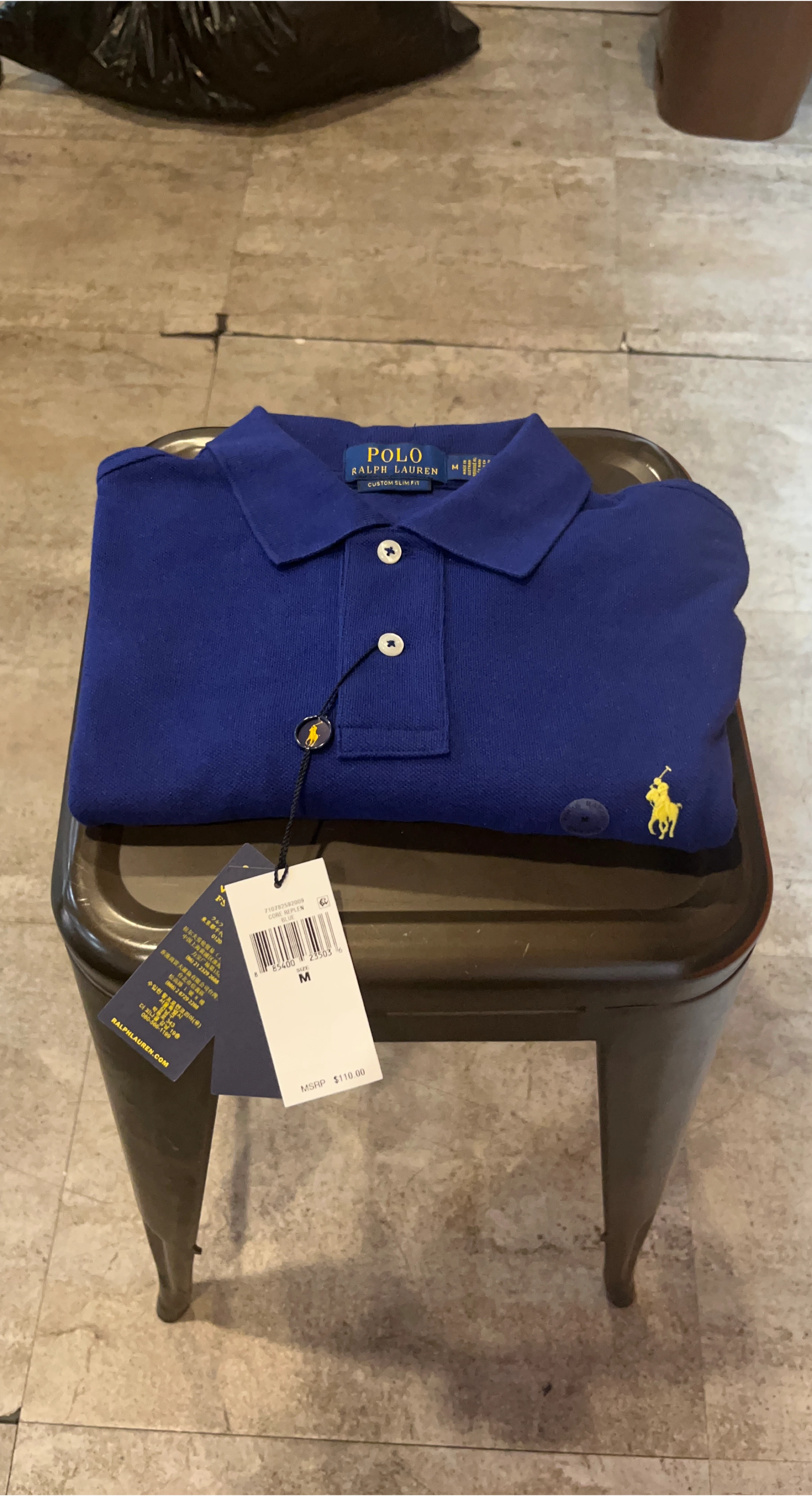 10I'm selling a brand new Ralph Lauren Polo shirt in size M. It's a custom slim fit and the color is blue. The original price was $110! New with tags