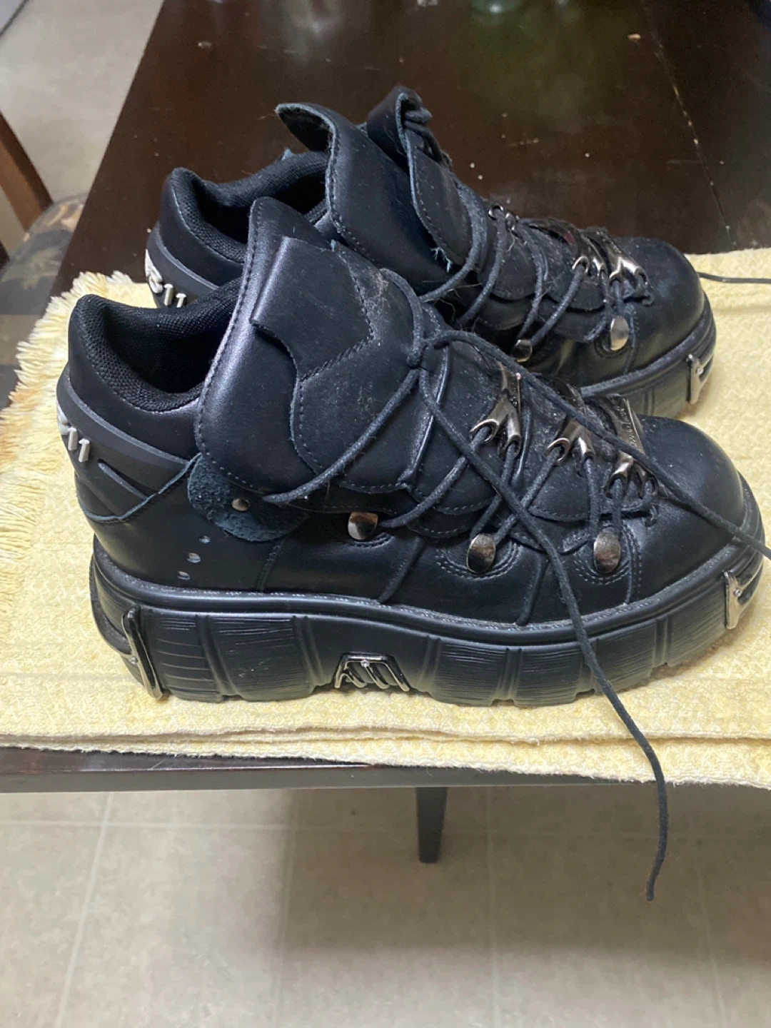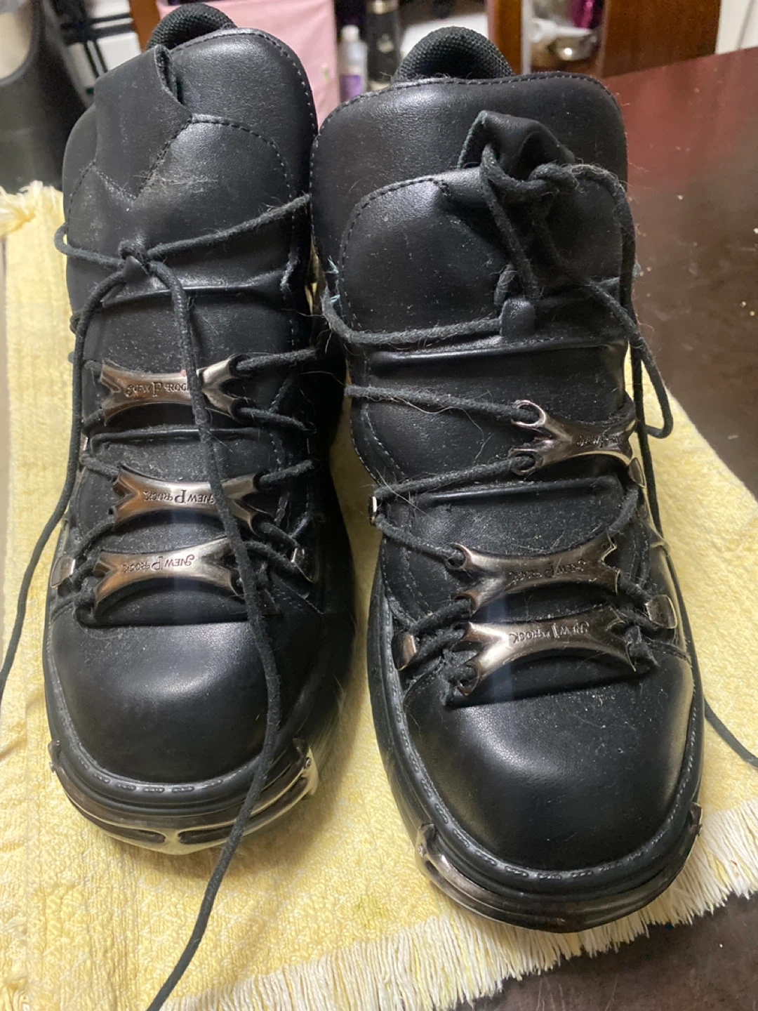 Selling a pair of New Rock platform boots in black leather! They show some signs of wear, but they're still in good condition and ready for a new home. The size is EU 38.5.