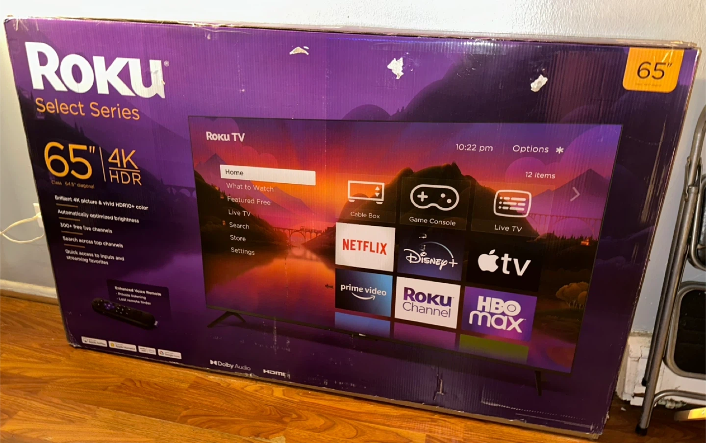 10Selling a brand new Roku Select Series 65" 4K HDR TV! It's still in the box and ready for a new home. The box states it has brilliant 4K picture and vivid HDR10+ color. It also features automatically optimized brightness and 300+ free live channels. This TV originally retails for $398