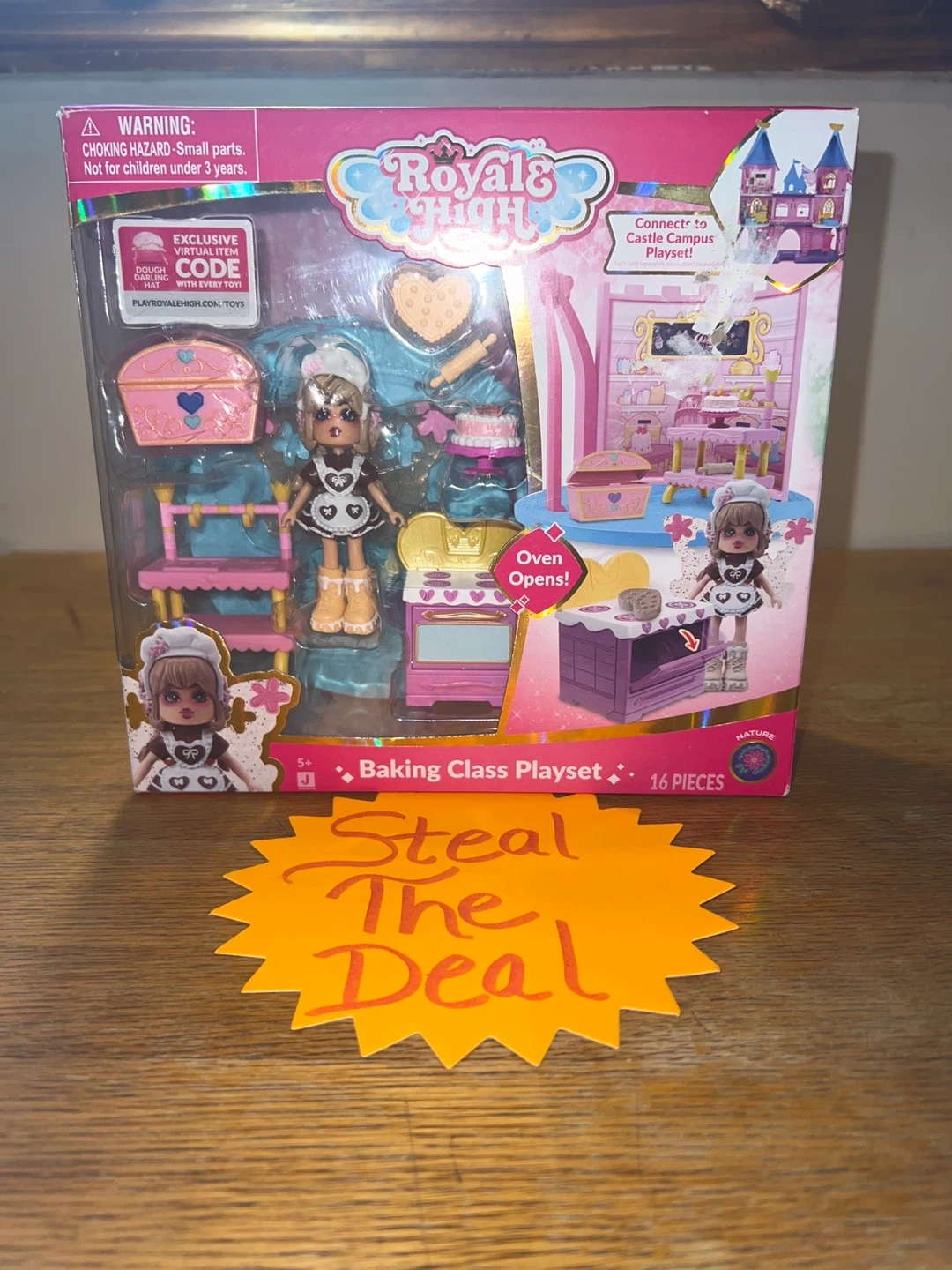 I'm selling a brand new Royal High Baking Class Playset! It comes with 16 pieces and is recommended for ages 5+. It's ready to connect to the Castle Campus Playset for even more fun! NEW IN ORIGINAL BOX