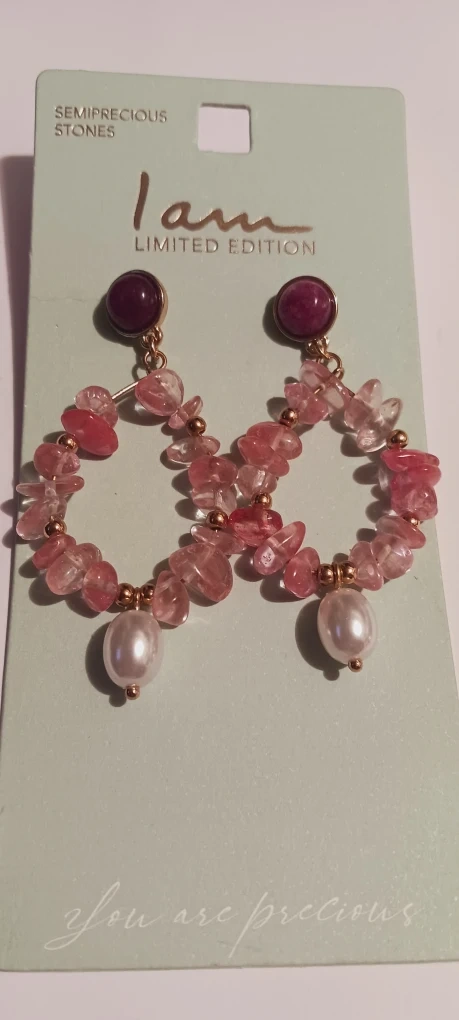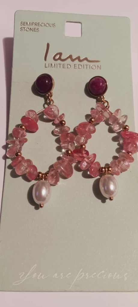 1000+New !!! Limited Edition earrings featuring semiprecious stones. The earrings have a circular design with pink stones and a pearl accent. They're perfect for adding a touch of elegance to any outfit! Brand New !! 2"×1". ALL MY PRICES ARE NEGOTIABLE !!!
