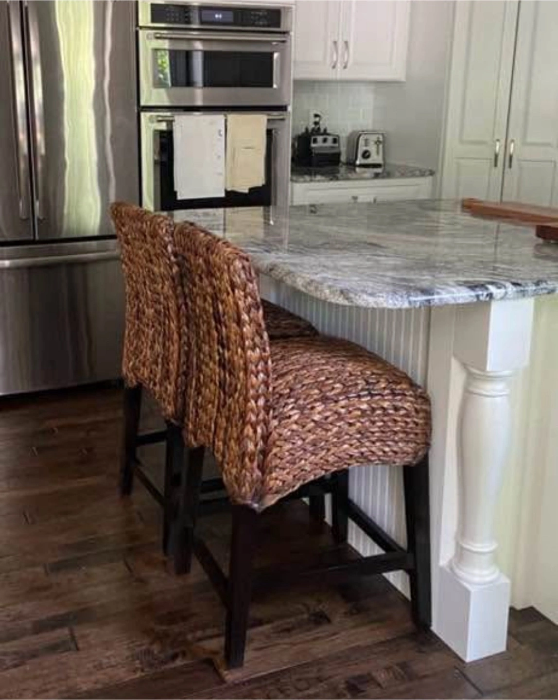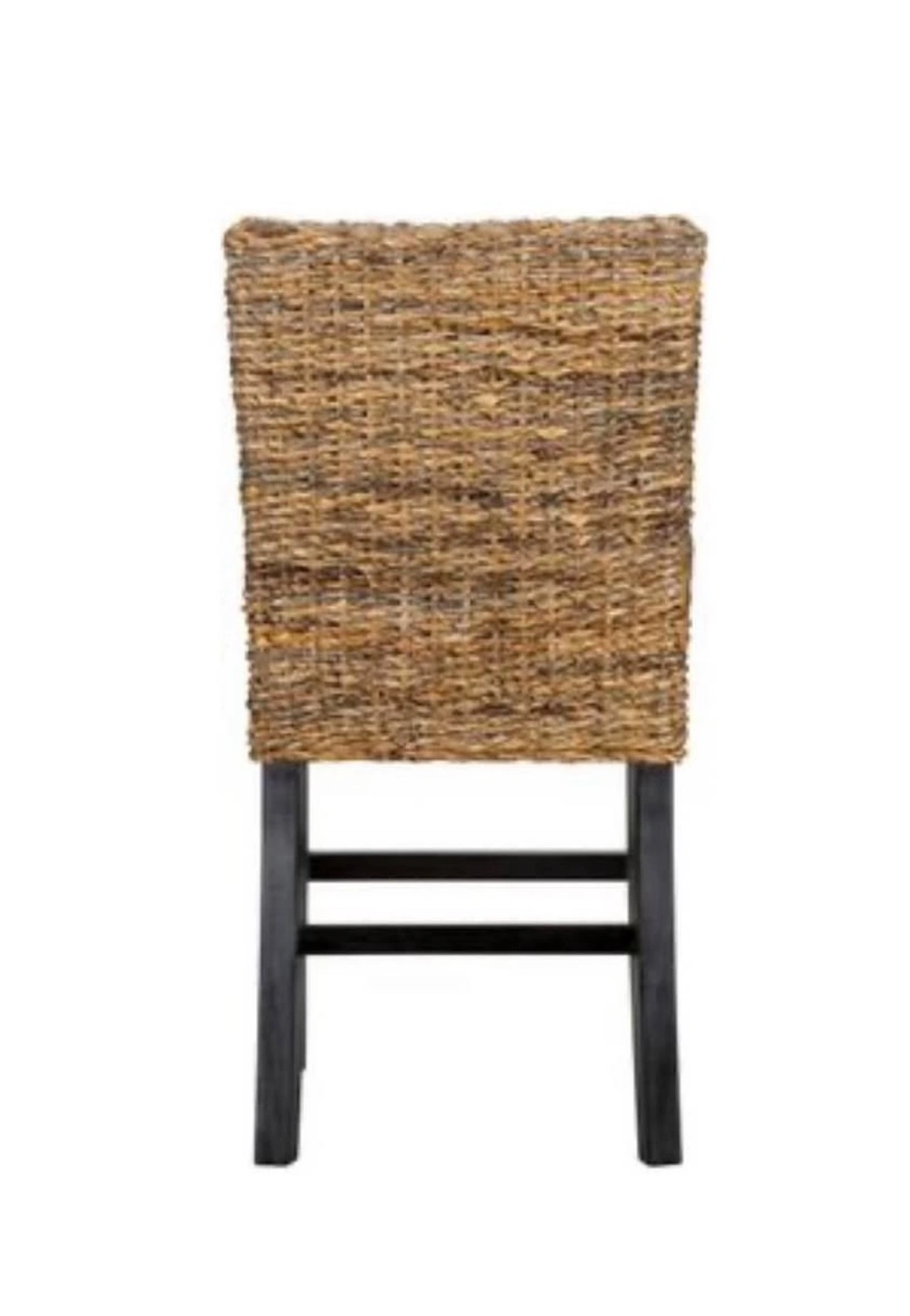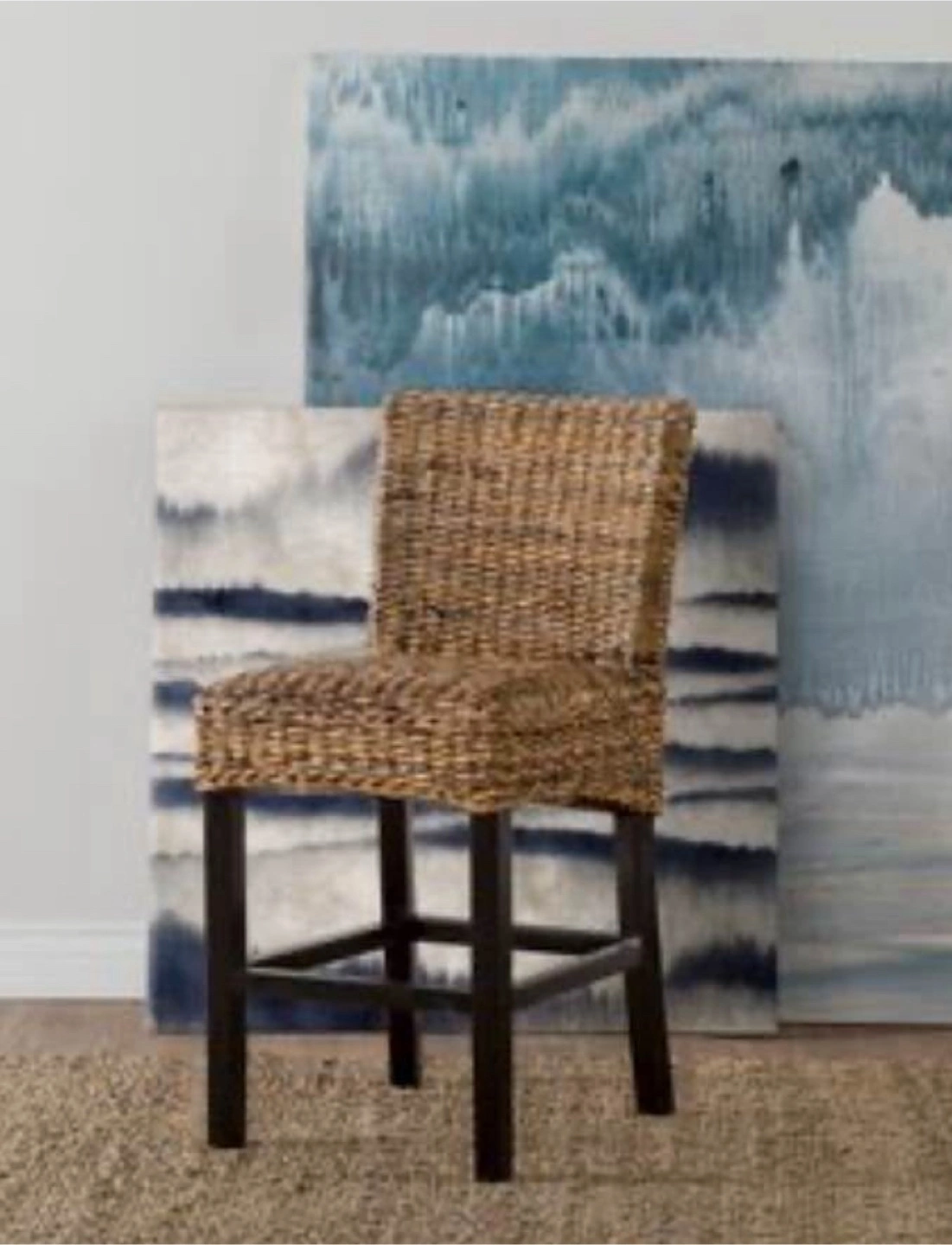 New Set of 2 Abaca Boho Counter Height Stools Features * New in the Box/Excellent Condition! Excellent Reviews!! * Dimensions: 19"W x 22.5"D x 37"H * Seat height 24 inches * Solid Mahogany legs * Straight legs * Inbuilt seat cushion * Plastic foot pad included * Solid hardwood and plywood construction * Trusted Seller / Read/ See My Reviews! Follow Me For Amazing Deals Listed Daily