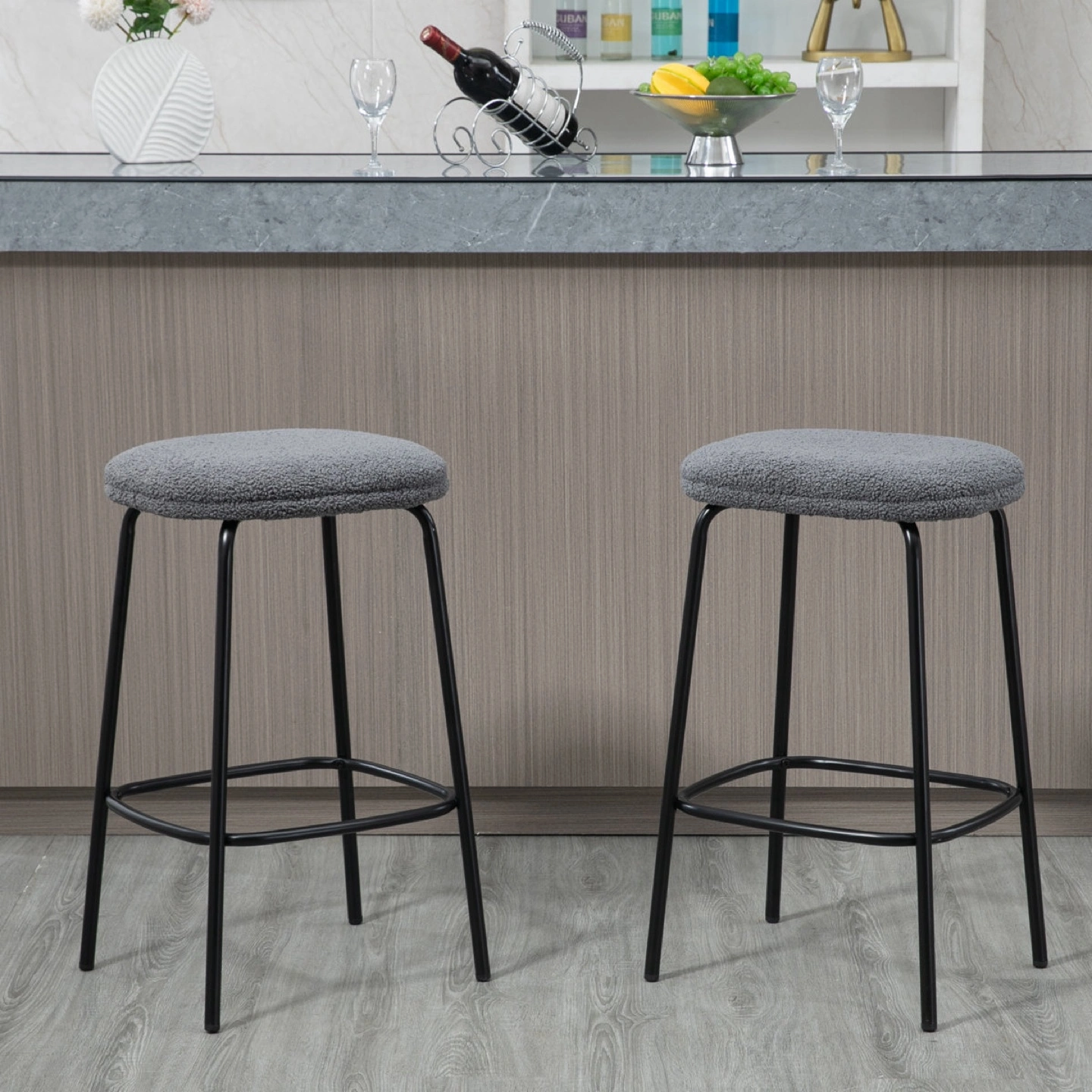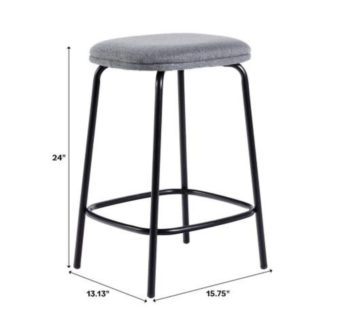 New Set of 2 Modern Counter Height Stools Grey * New in the Box/Excellent Condition * Dimensions: 24” H x 15 ¾” L x 13 ⅛” W * Modern style * Made from durable powder-coated steel * Set of 2 * Easy-to-clean woven upholstery * Adjustable foot levelers ensure stability * Comfortable seat filled with high-quality foam * Trusted Seller / Read/ See My Reviews! Follow Me For Amazing Deals Listed Daily!