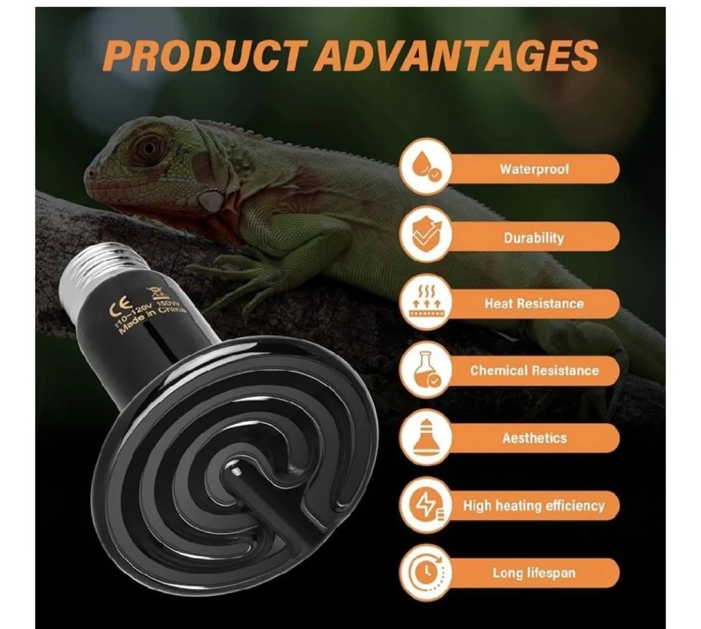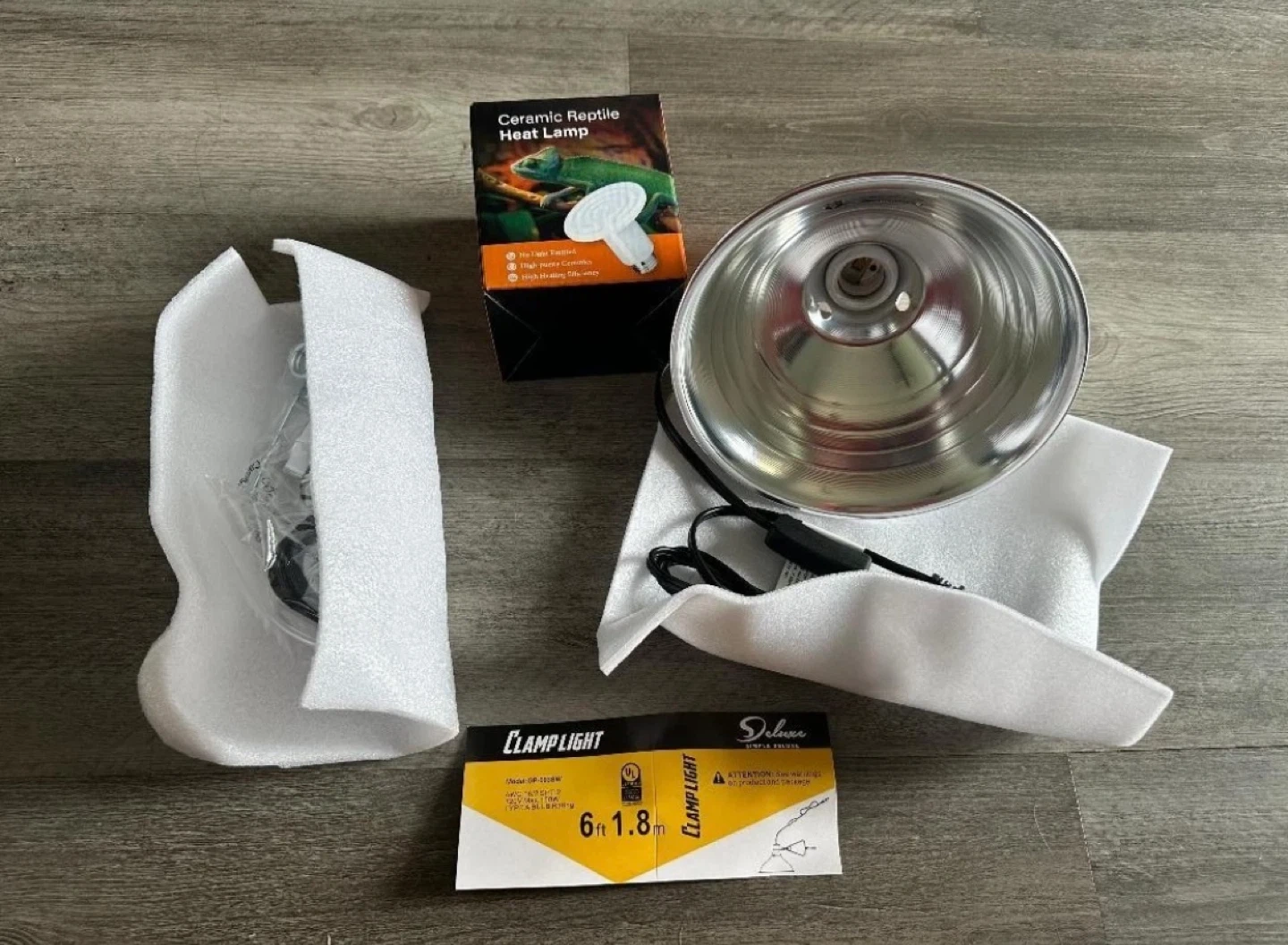 Simple Deluxe Adjustable Clamp Lamp Light Socket with Aluminum Reflector and Heat Emitting Only Bulb for Reptiles and Amphibians New, Open Box