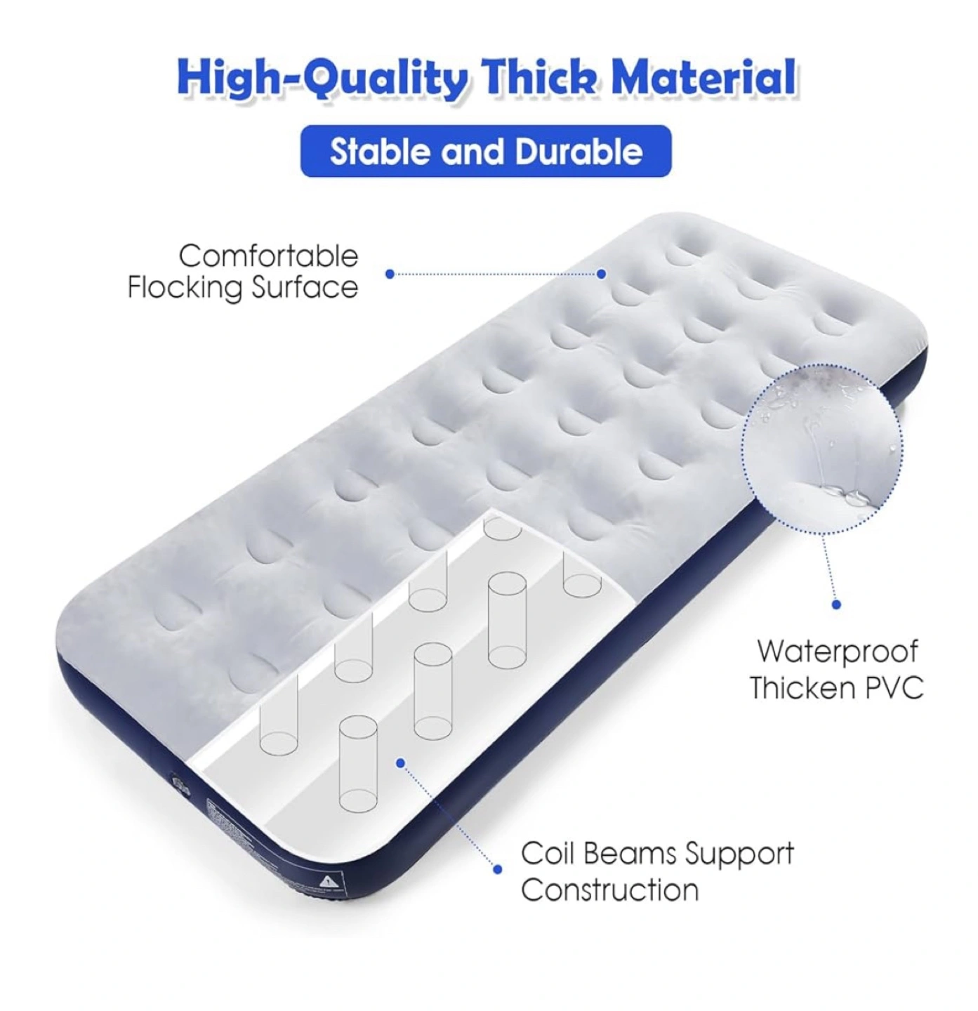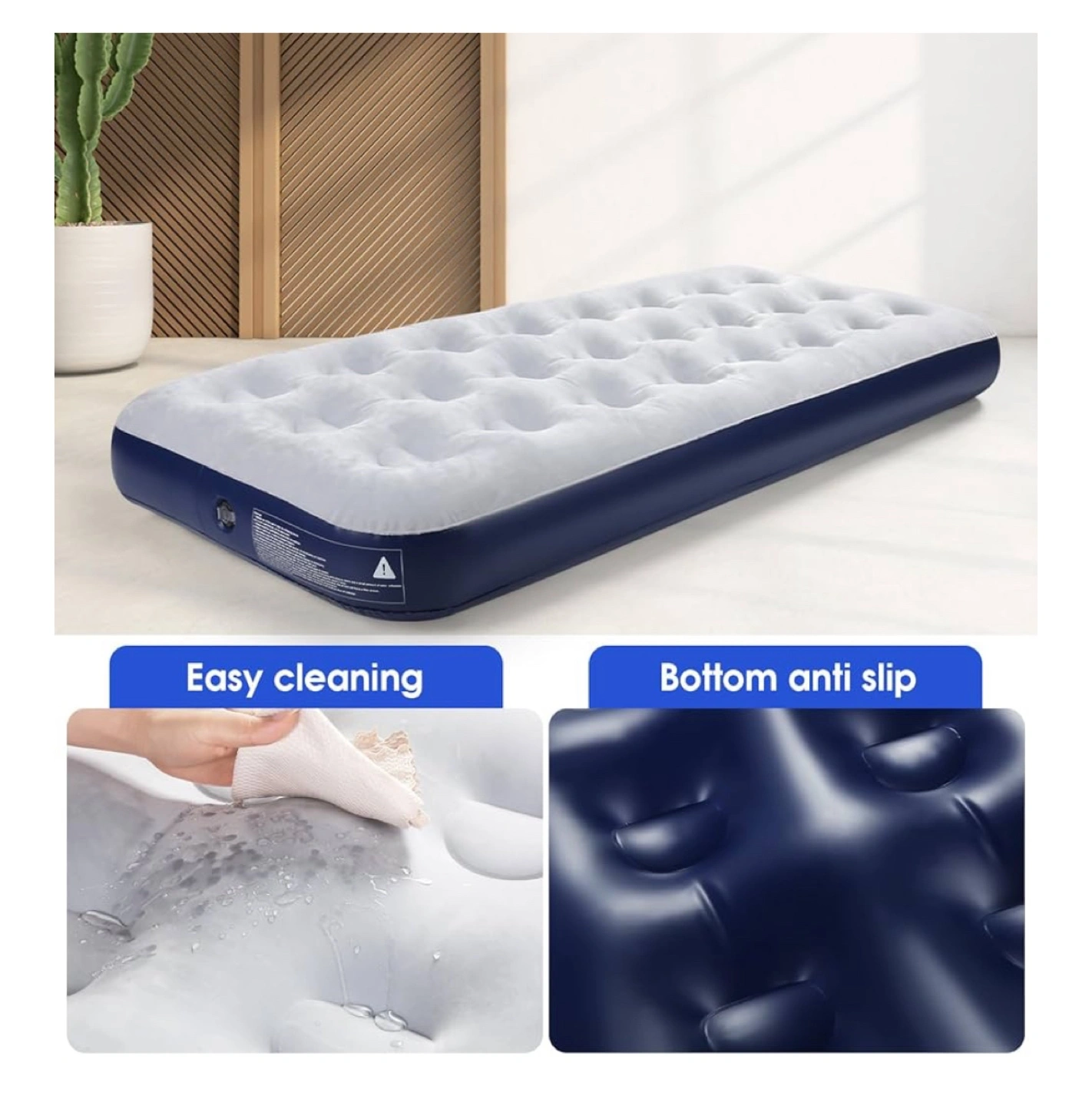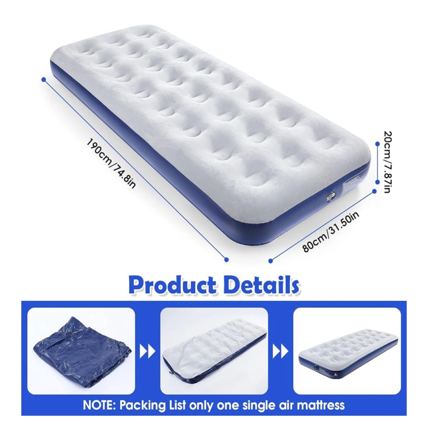 Selling a brand new single size air mattress. It features an easy-to-clean surface and a bottom with anti-slip design. The mattress is made with high-quality thick material that is stable and durable, and has a comfortable flocking surface. It's also waterproof, thanks to its thicken PVC construction. Dimensions are 190cm x 80cm x 20cm (74.8in x 31.50in x 7.87in), comfortable for 1 adult. Comes with a little bag for storage and protection. Ideal for camping, outdoor use or a guest bed. For pick-up in the west village 10014