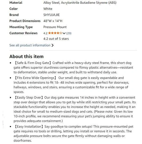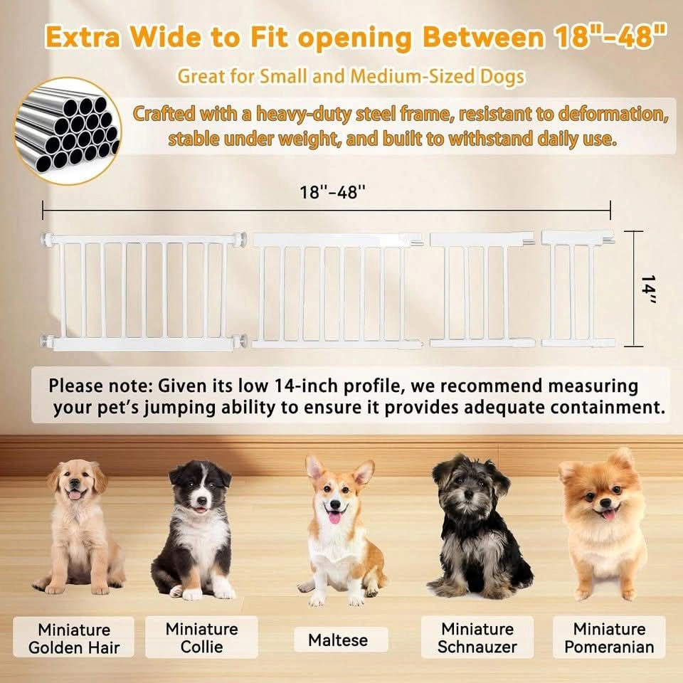 New~Small Pet Gate,4 Extensions,Pressure Mount,(18-48" W- 14" H)
