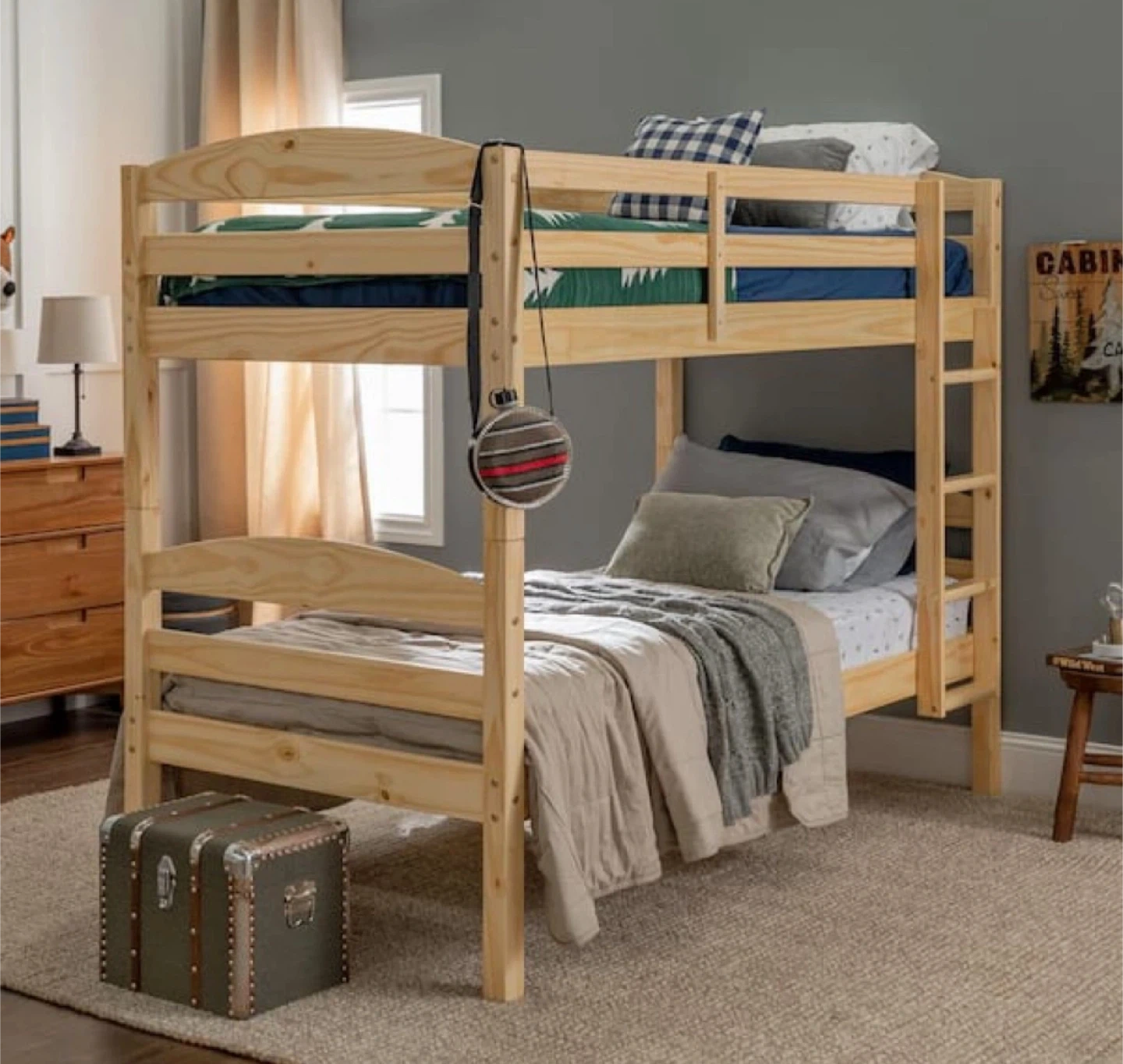 New Solid Wood Transitional Bunk Beds - Twin Over Twin Dimensions: 43.75"W x 79.25"D x 64.5"H Headboard Height: 16.5" Footboard Height: 16.5" Leg Height: 12.25" New In The Original Box/Excellent Condition For Easy Transport in Vehicle Verified/Trusted Seller Read My Reviews!