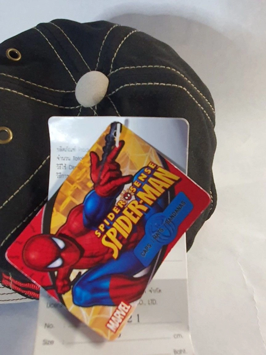 NEW SPIDER-MAN TAN BRIM/BLK/RED DOUNLE STRIPE KIDS HAT. size 50 CM see size chart. Spider Sense on brim. Spider kick on hat Color: Multicolor Brand: MARVEL