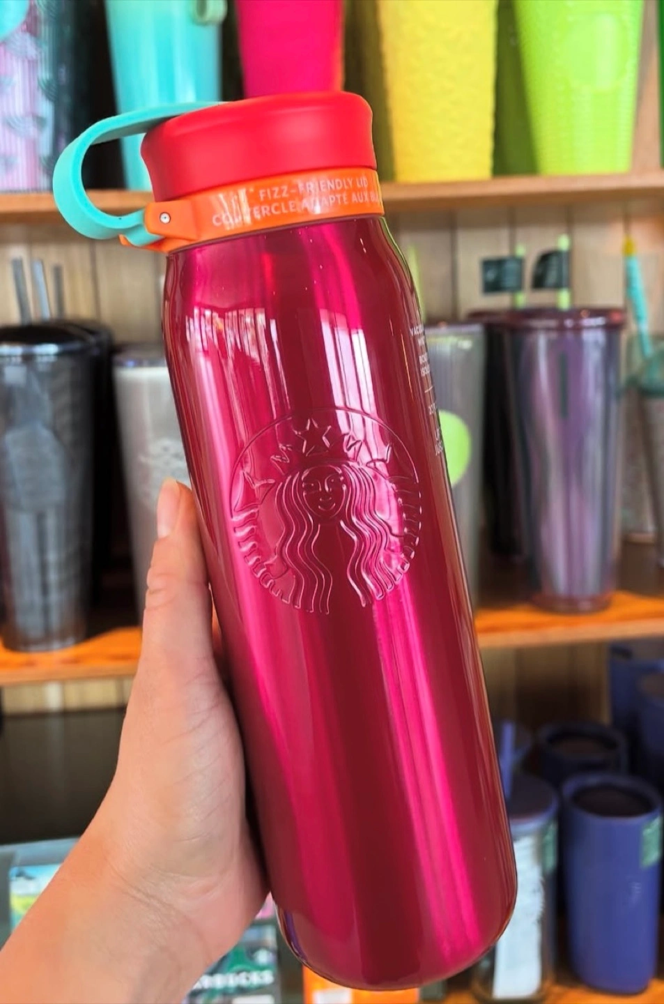NEW (never been used) Starbucks 2025 Red Hot and Cold Fizz friendly Lid Vacuum Insulated Water Stainless Steel Bottle, 20 oz.