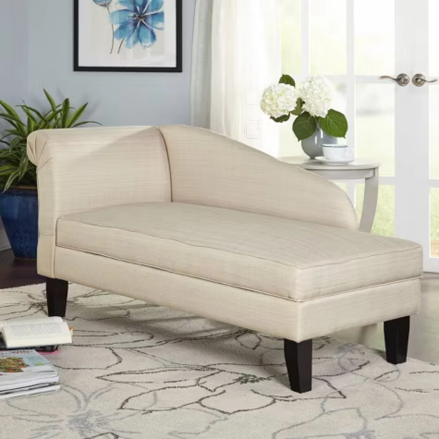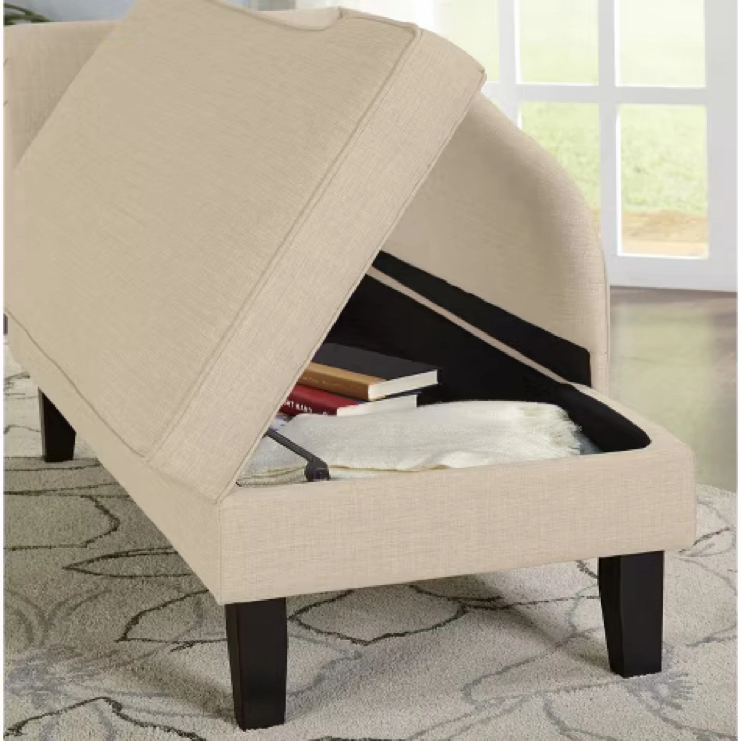 183New Storage Fainting Lounge Chaise Sofa Chair - Cream New in Original Box - Excellent Condition! Trusted Seller / Read My Reviews Dimensions: 63” W x 25.5” D x 31” H Storage: 46” W x 20.25” D x 4” H