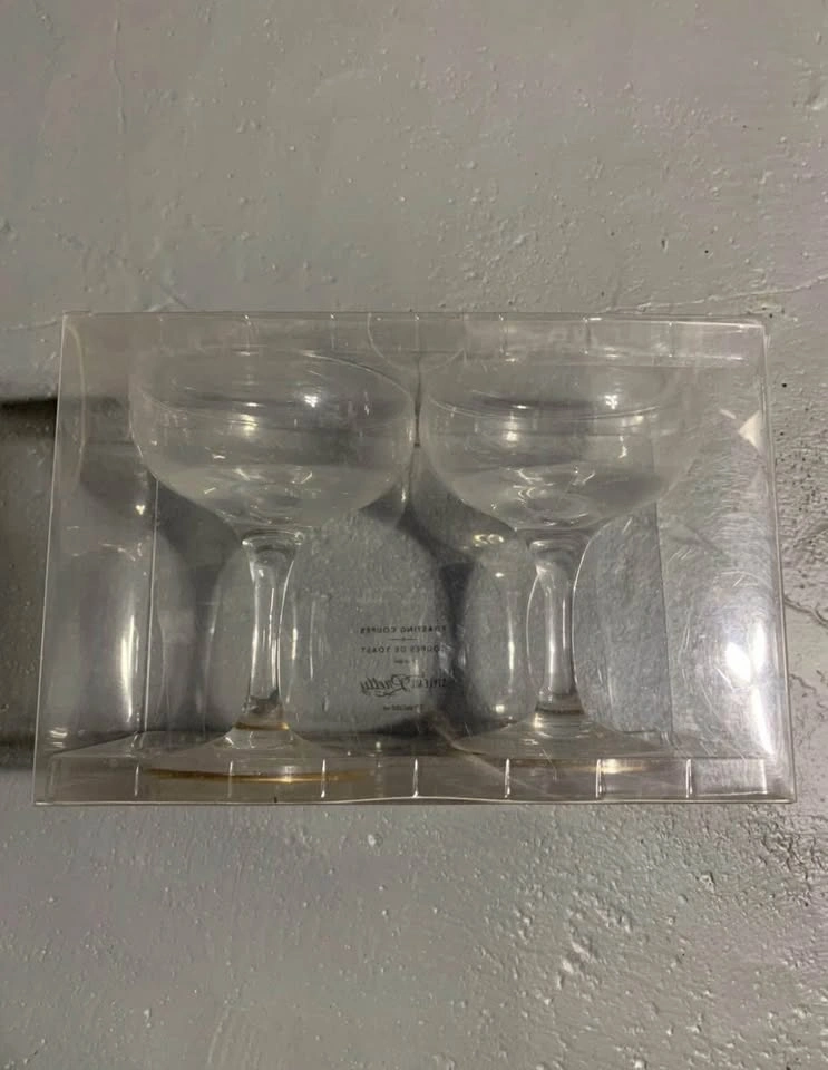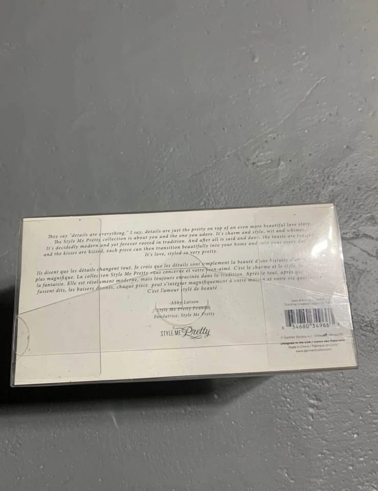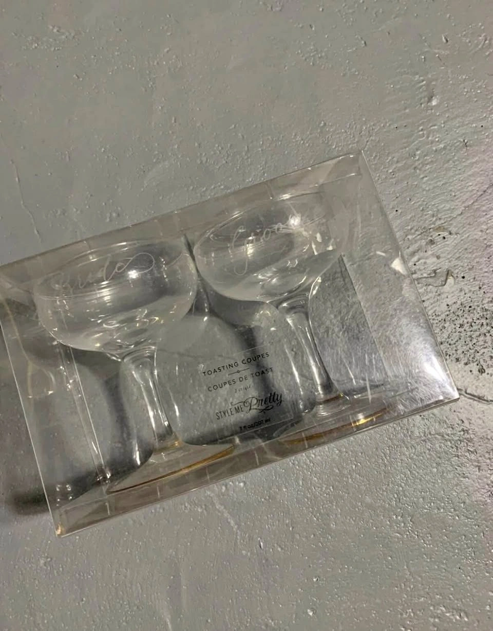 15This is a new Style Me Pretty Bride & Groom Wedding Champagne Glasses Gold Trim. It's a little dusty inside but nothing a wash wont take care of. Great for weddings. Please ask questions before buying, no returns.