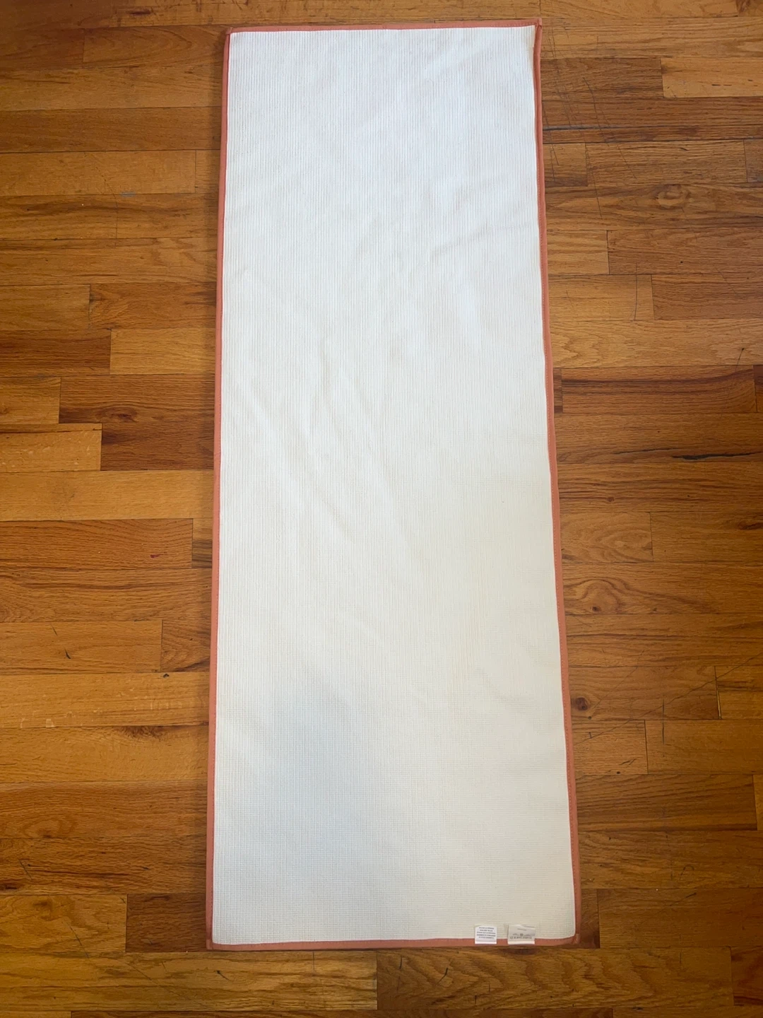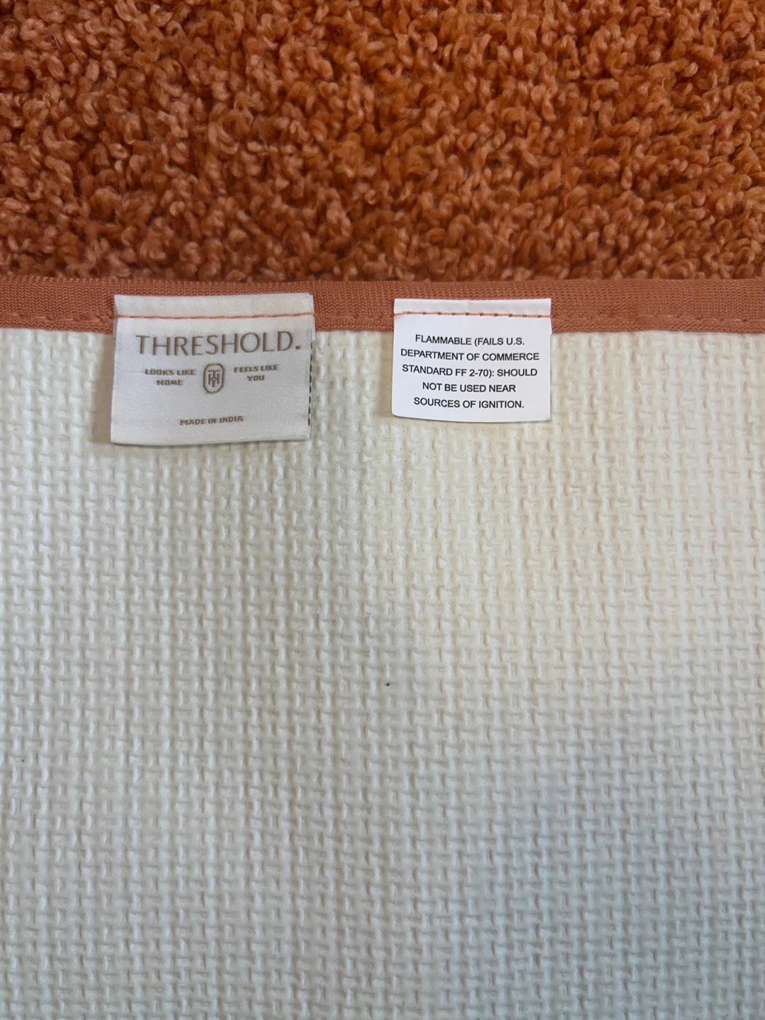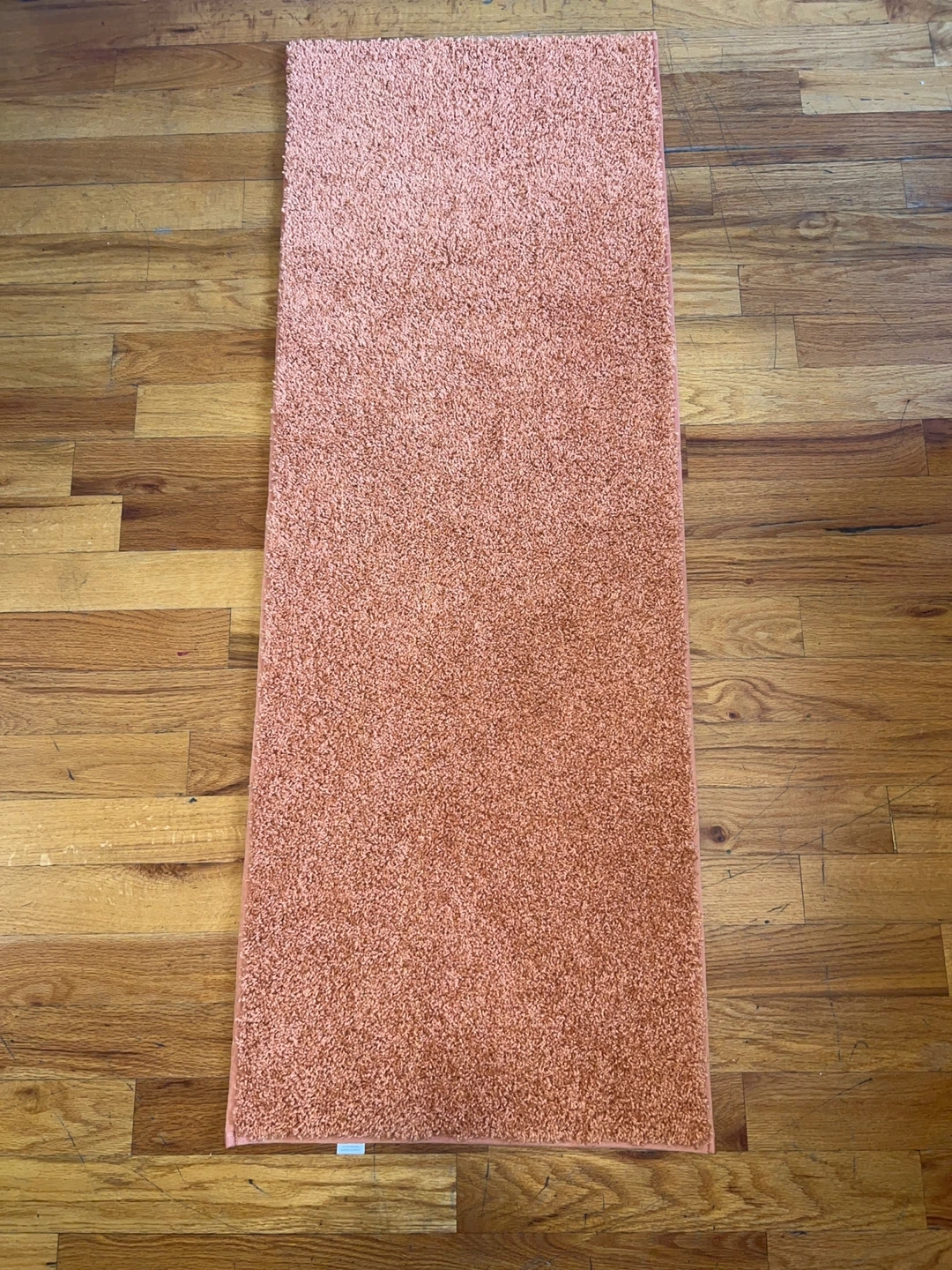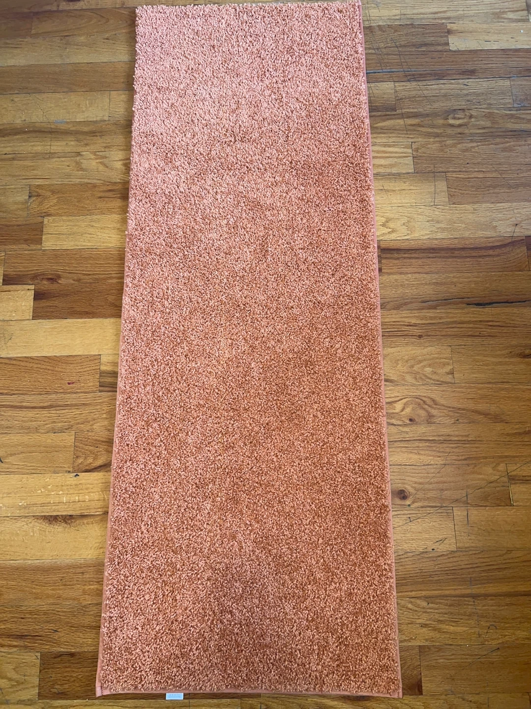 Threshold room or bath rug in a coral color. It's in great condition and ready to add a pop of color to your room or bathroom! NEW NEVER USED IT IS 22x60