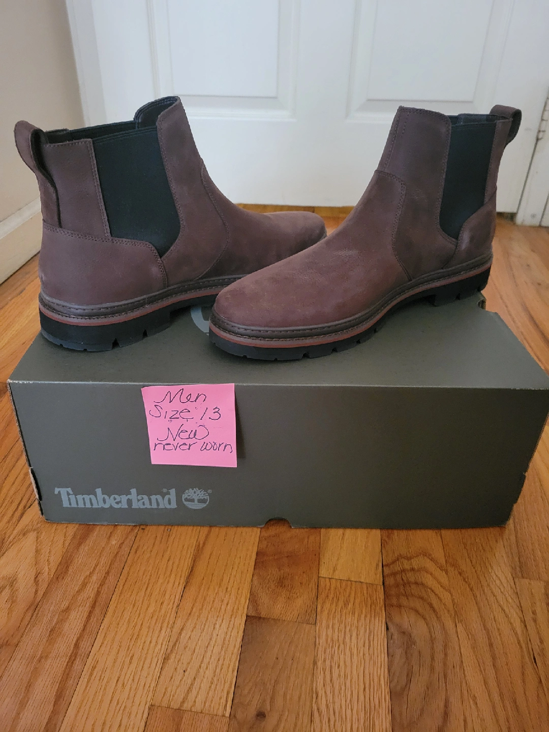 Selling a pair of brand new Timberland Chelsea boots in men's size 13! They have never been worn and come with the original box