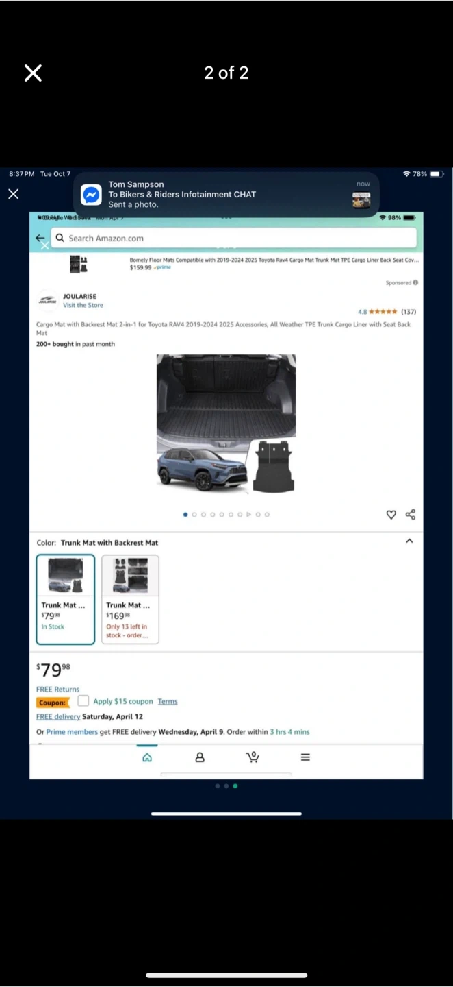 65New never used Joularise all weather, one piece, cargo liner with seat back protection Fits Toyota RAV4 2019-25 Located in Plainfield IL $40 obo