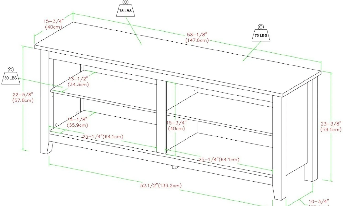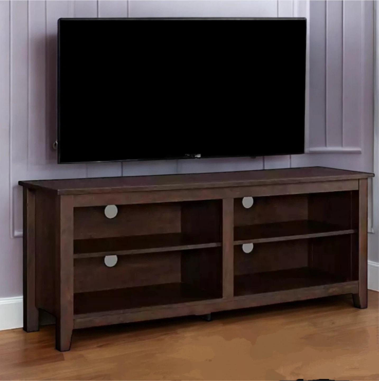 172New Traditional Brown Tiered Top Open Concept TV Stand for TV’s Up To 65” Inches New In Box - Excellent Condition! * Dimensions: 24" H x 58" L x 16" W * 2 adjustable shelves * 4 cord management ports * Accommodates TVs up to 65” * Verified and Trusted Seller - Read My Reviews * EC20