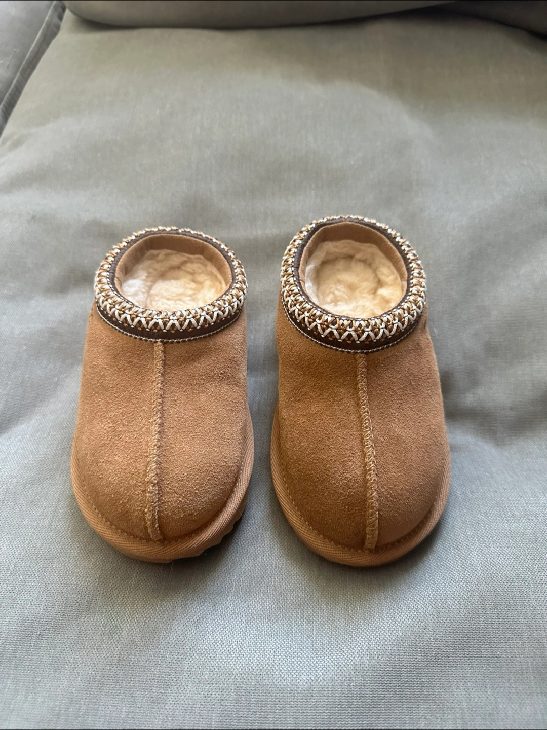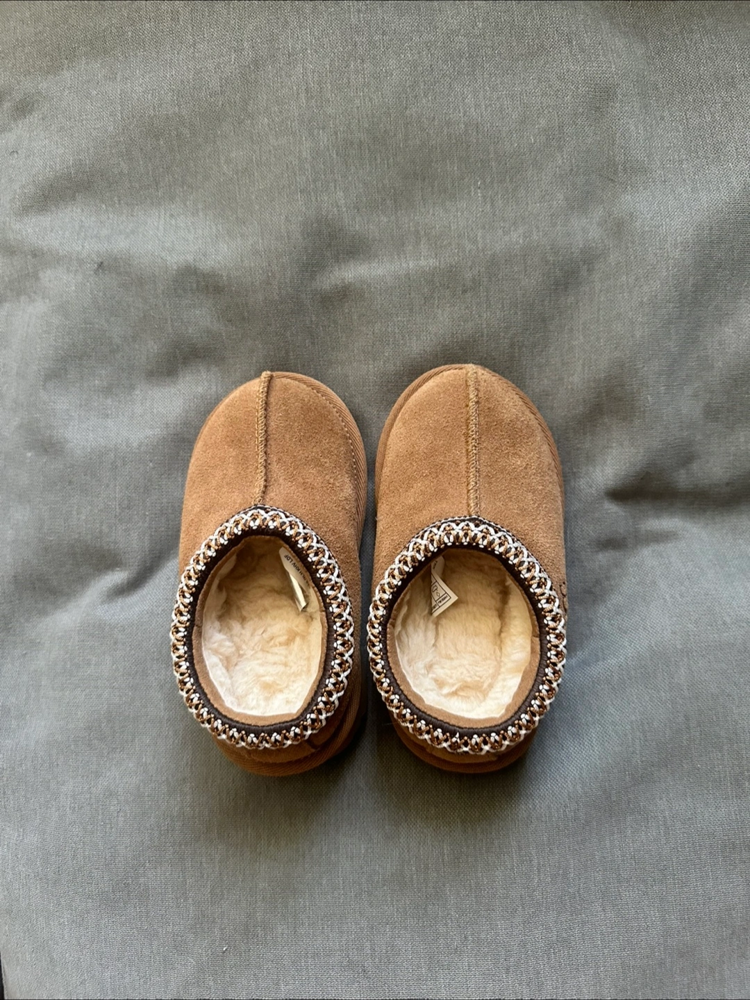 These UGG Kids Tasman slippers are brand new and ready for a new home! They're a cozy brown color and perfect for keeping little feet warm. Never worn