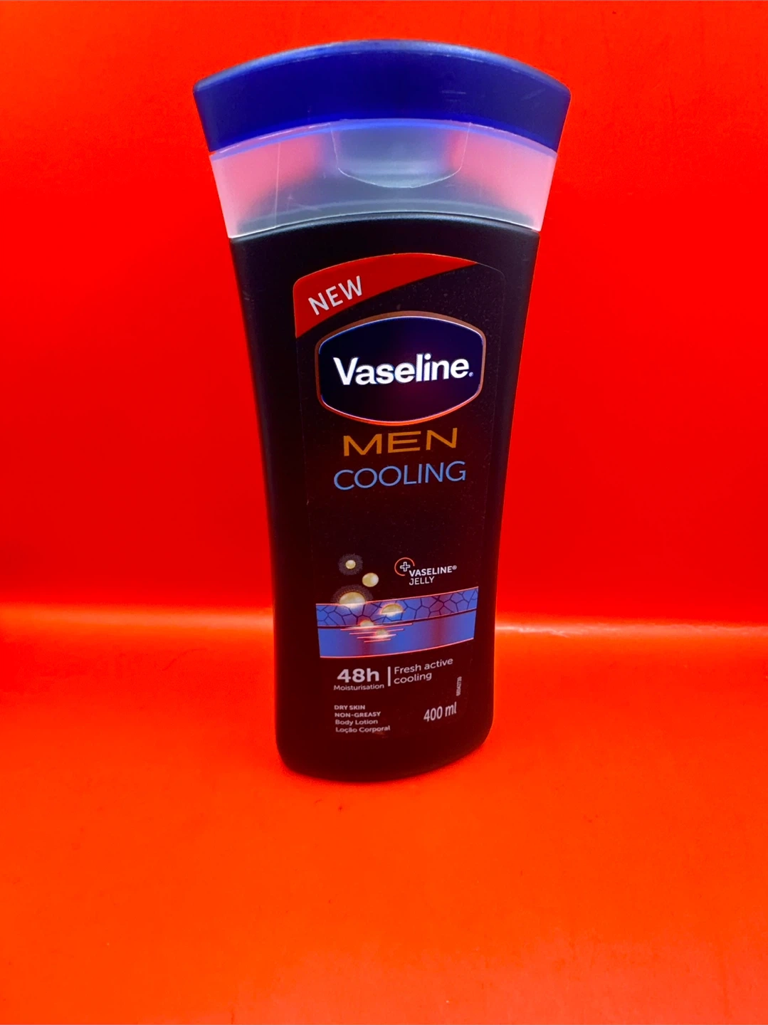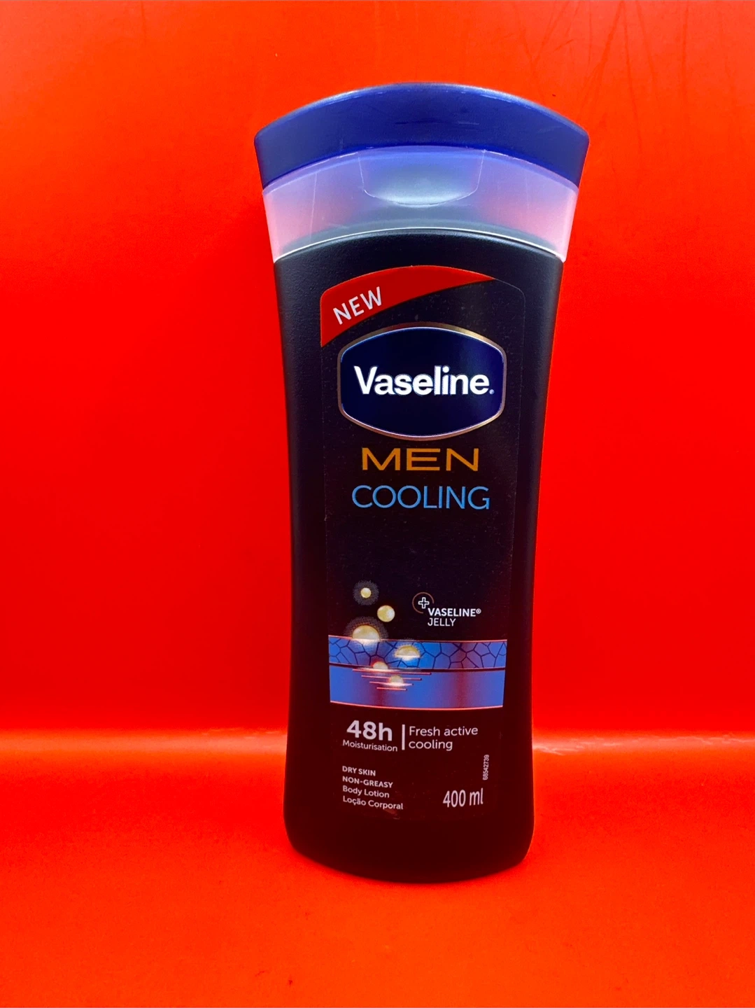 I'm selling a brand new bottle of Vaseline Men Cooling Lotion! This lotion provides 48h of fresh active cooling and contains Vaseline jelly. The bottle contains 400 ml and has an expiry date of August 2026. Perfect for dry skin and non-greasy