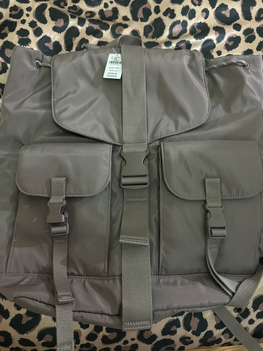140This is a brand new Victoria's Secret PINK backpack with the tags still attached! It's a stylish and functional bag, perfect for everyday use. The original price on the tag is $59.95.