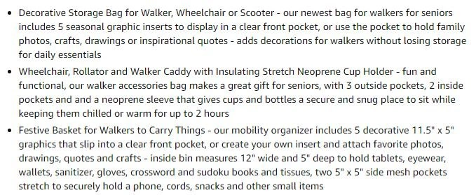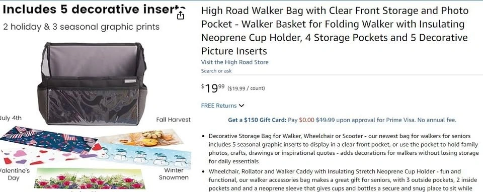 New~Walker Bag With 4 Storage Pockets And 5 Picture Inserts
