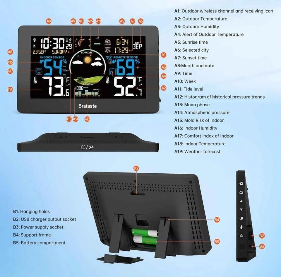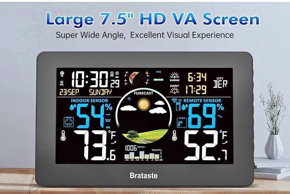 25BRAND NEW Weather Station Wireless Indoor Outdoor Digital Thermometer Remote Sensor 7.5'' HD VA Display Home Weather Station Accurate Temperature Humidity Gauge Weather Forecast Atomic Clock weather station wireless, digital thermometer with remote sensor, indoor outdoor weather station, 7.5" HD display weather monitor, accurate temperature humidity gauge, atomic clock weather station, home weather station, wireless forecast station, indoor outdoor thermometer, humidity and temperature monitor, LCD weather display, digital hygrometer, wireless weather gauge, real-time weather forecast, multifunction weather station, barometer and thermometer, smart home weather device, remote sensor weather unit, large screen weather monitor, atomic time clock with weather