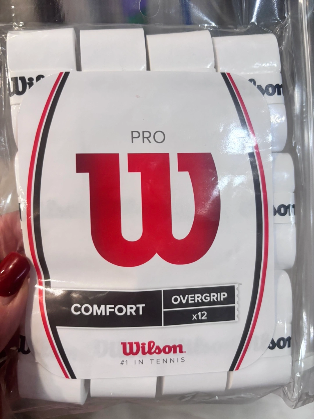 47Upgrade your game with the Wilson Pro Comfort Overgrip — the same overgrip trusted by top players worldwide. This 12-pack offers superior comfort, moisture absorption, and a clean, professional look for your tennis racket. Features: Brand: Wilson Model: Pro Comfort Overgrip Quantity: 12 grips per pack Color: White Condition: Brand New, Factory Sealed Enhances grip comfort and tackiness Fits all standard tennis racket handles Perfect for: tennis players, pickleball enthusiasts, or anyone who prefers a soft, high-tack overgrip.