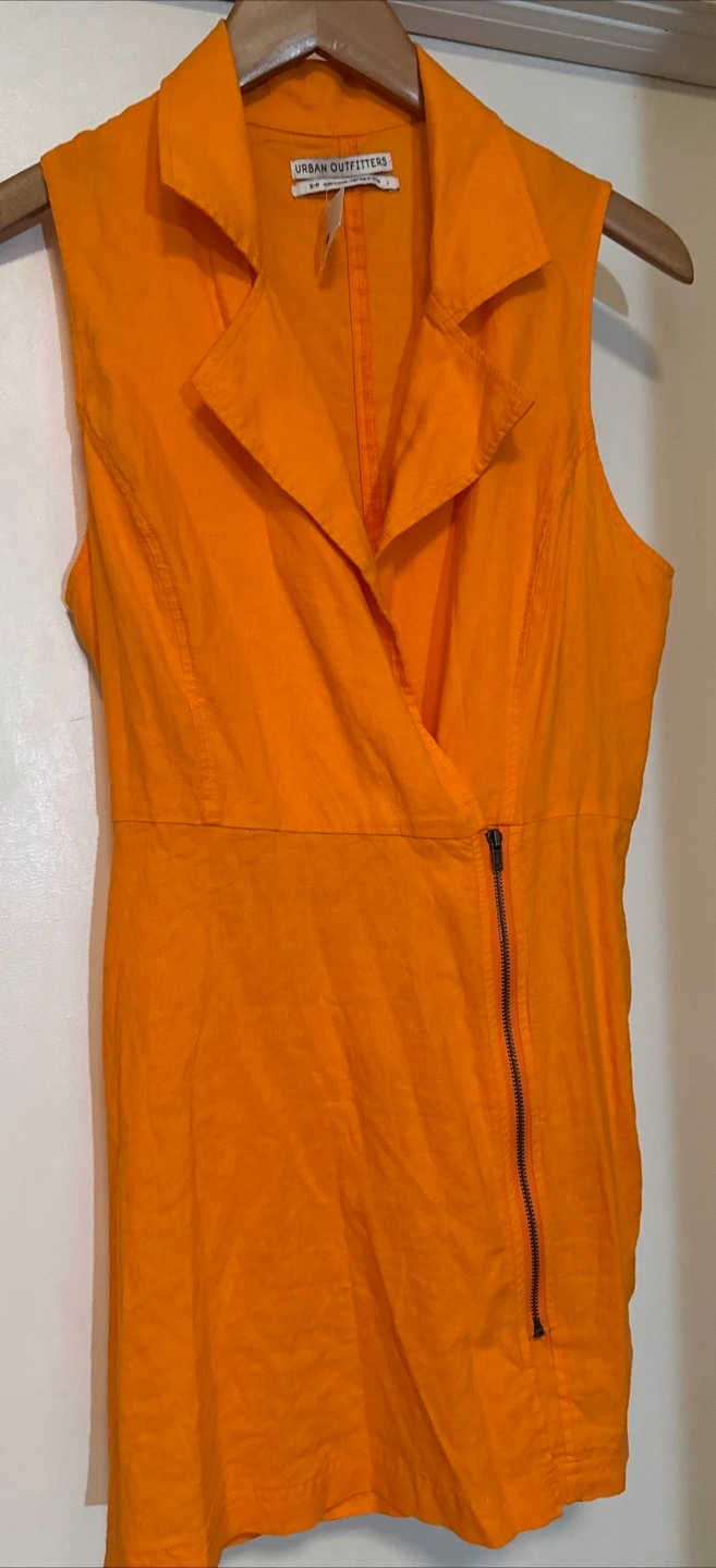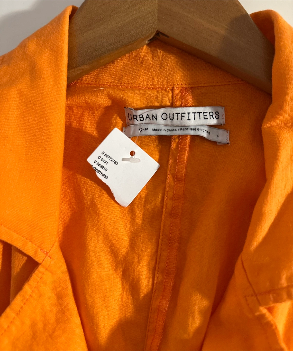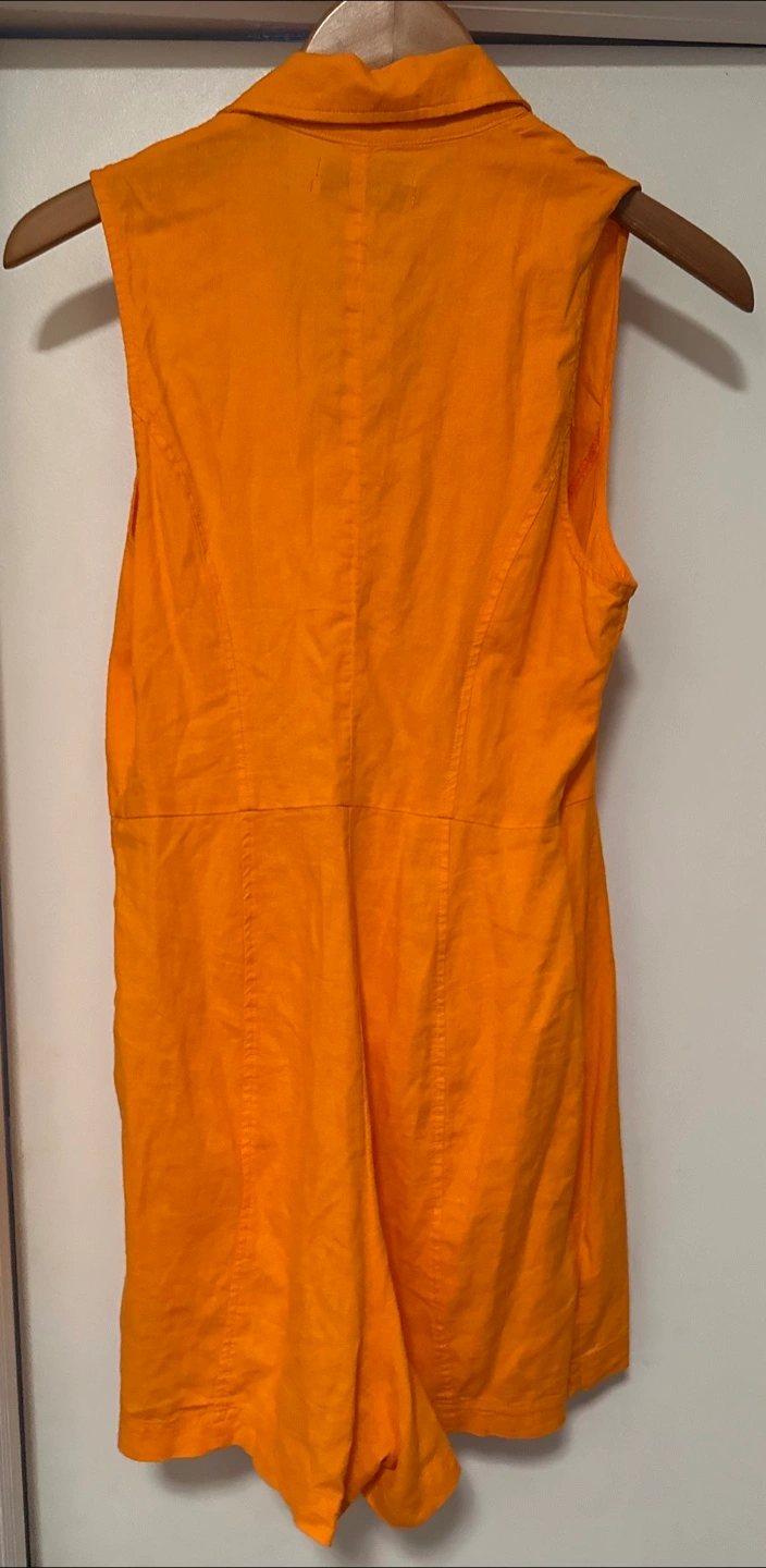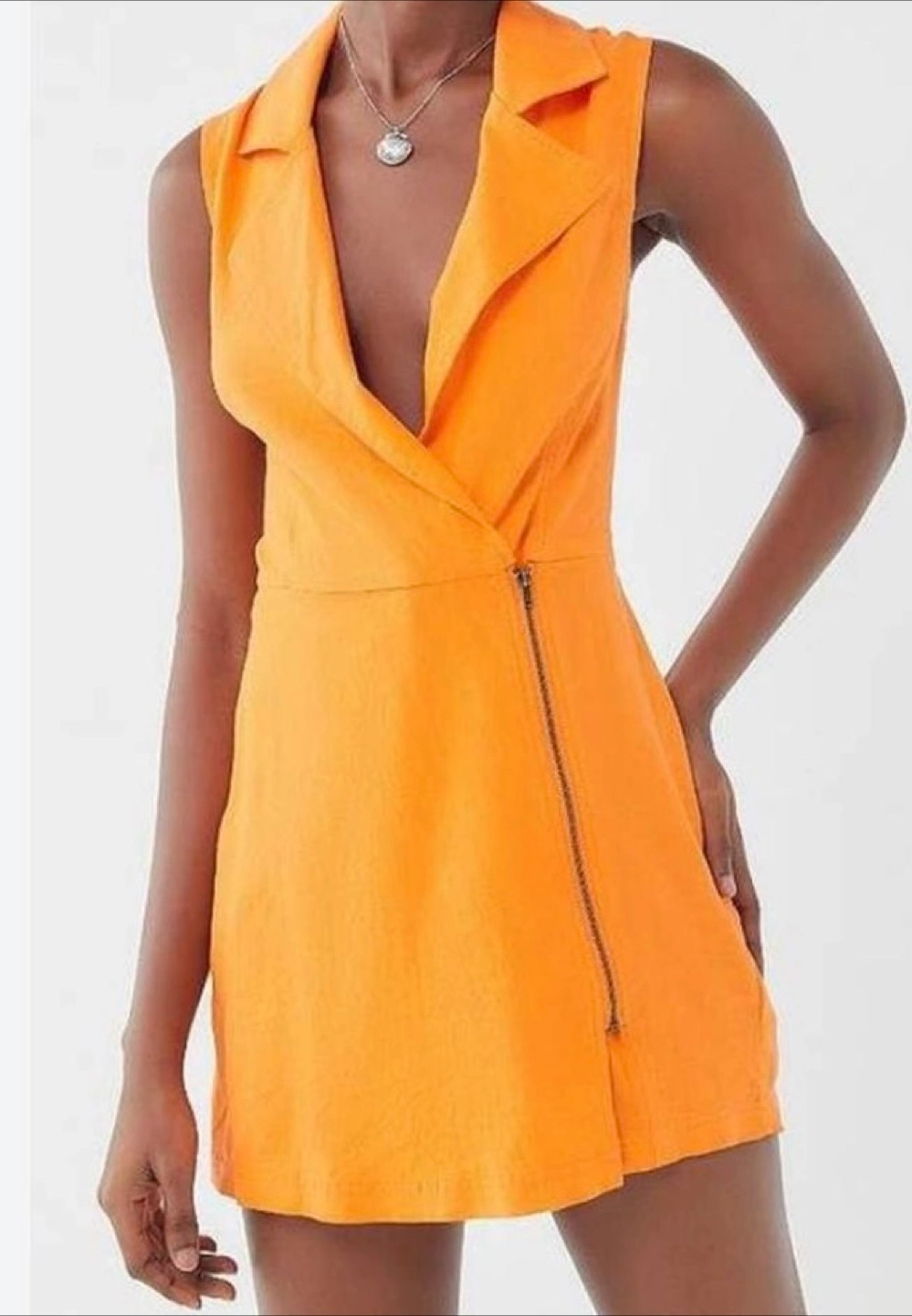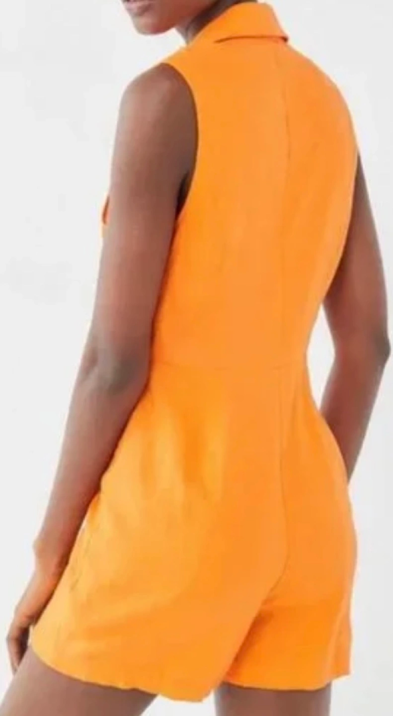 16Shorts or skirt? Why not both? This flattering Urban Outfitters Linen-Blend Zip-Front Romper in bright Orange hue is the needed addition to your summer wardrobe! It features a genius double zipper design: a wrap skort at the front and shorts in the back. Estimated retail: $89.99 Condition: New with tags 55% Linen & 45% Rayon Size: Top to bottom 29 in. Pit to pit 12 in. Machine wash cold with like colors
