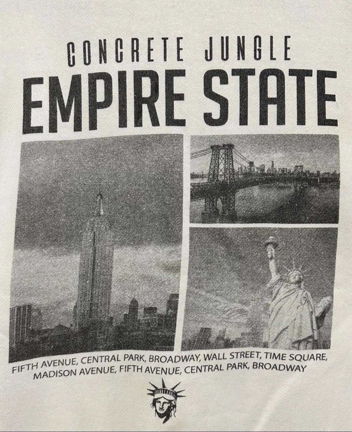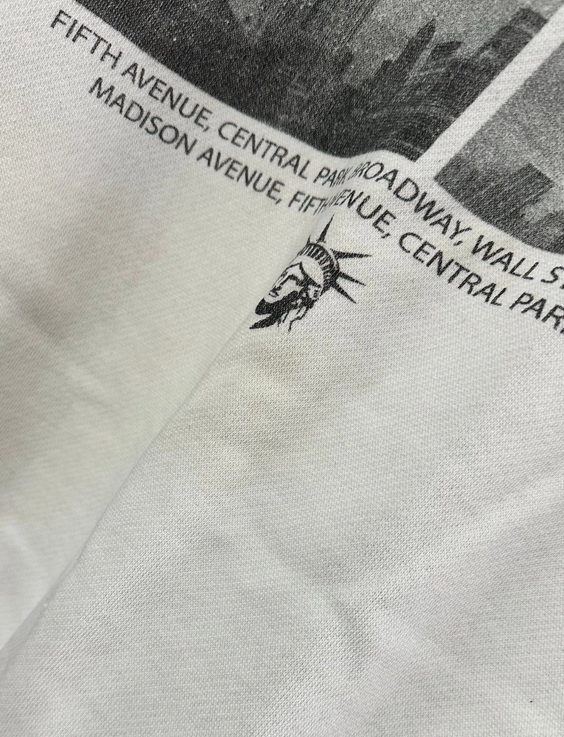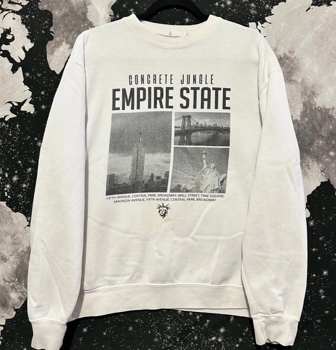 New York City ‘Concrete Jungle’ Empire State Famous Tourist Landmark Attractions crewneck sweatshirt , color is white with front graphic featuring The Statue of Liberty & list of NYC popular neighborhoods. Preowned condition *discoloration marks on sleeve & front center* *Fits an XL* Measurements (25”x27”) Size Type: Regular Size: XL Color: White Style: Pullover sweater Brand: No Label