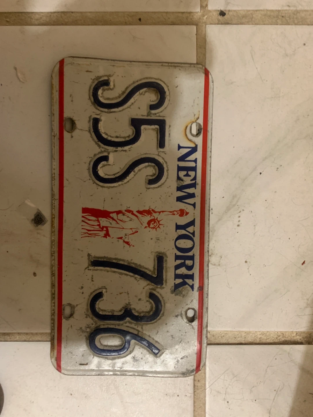 Selling a New York license plate with the number S55 736. It has some signs of wear, as you can see in the pictures