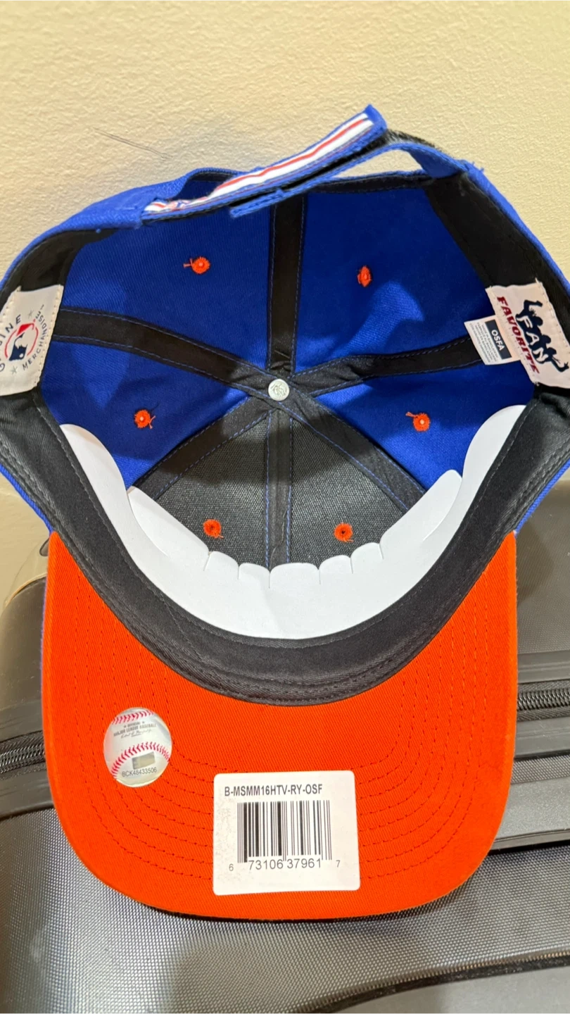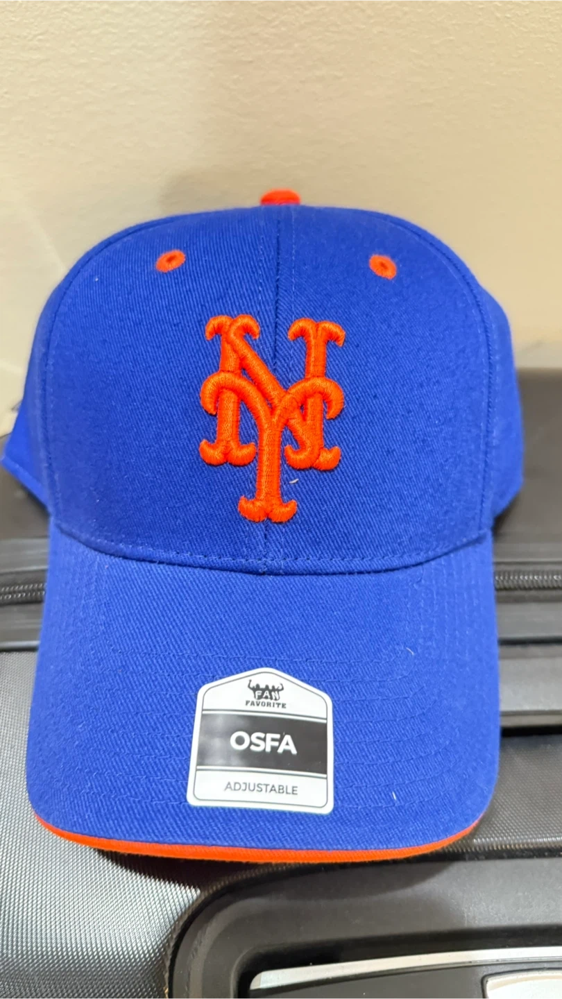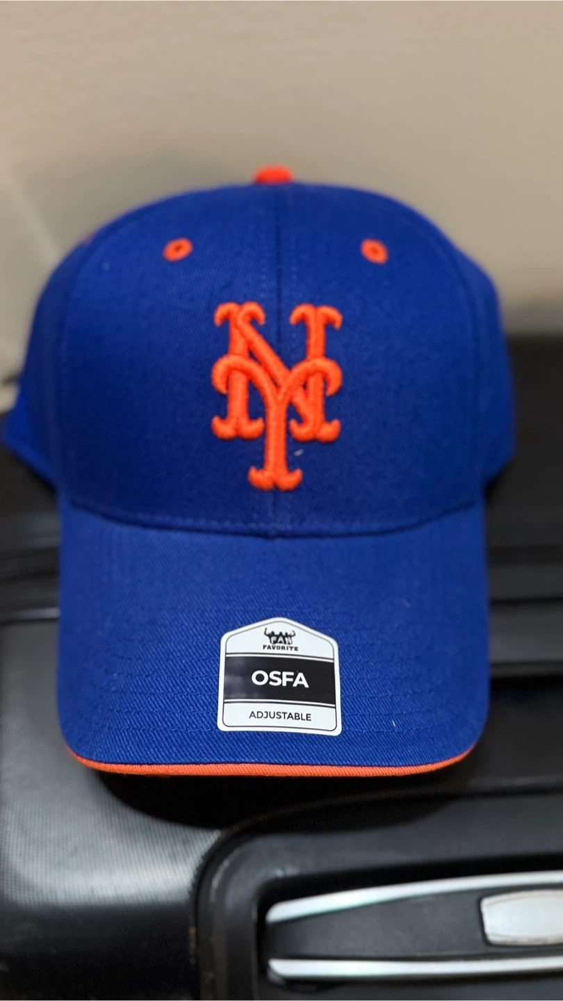 Get ready to show your team spirit with this New York Mets baseball cap! It's blue and orange, and it's adjustable to fit most sizes. This cap is in new condition and ready for a new fan.