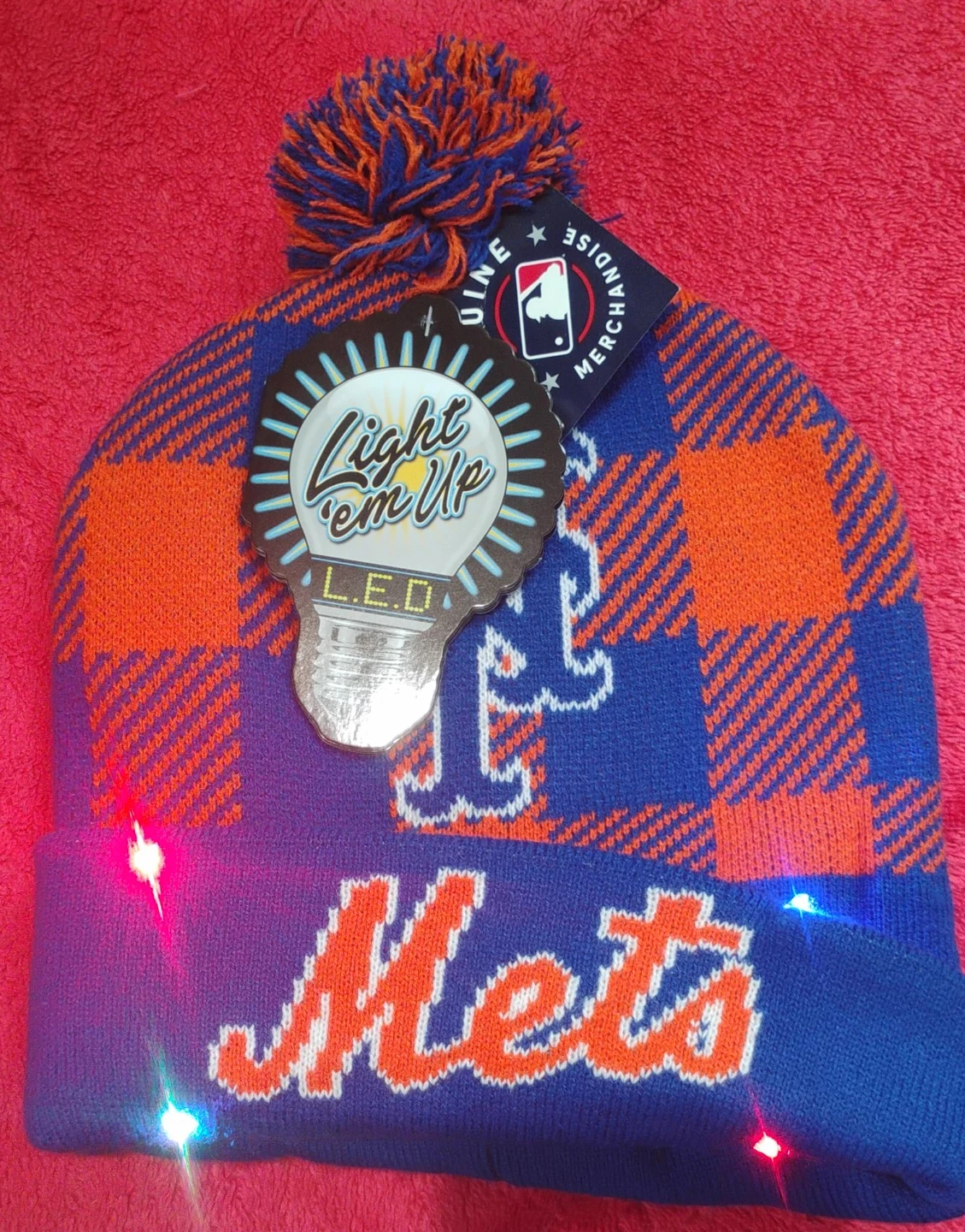 0Get ready to cheer on the Mets with this fun light-up beanie! It's perfect for showing your team spirit on game days or any day. The hat features the Mets logo and has cool LED lights to make you stand out in the crowd