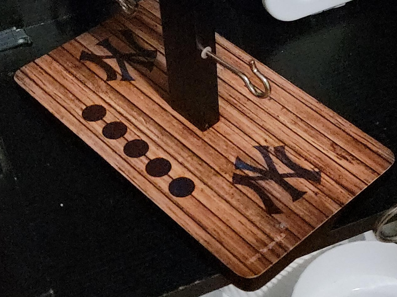 Here's a fun hook and ring toss game with the New York Yankees logo on the wood surface! It's in great condition and ready for some friendly competition
