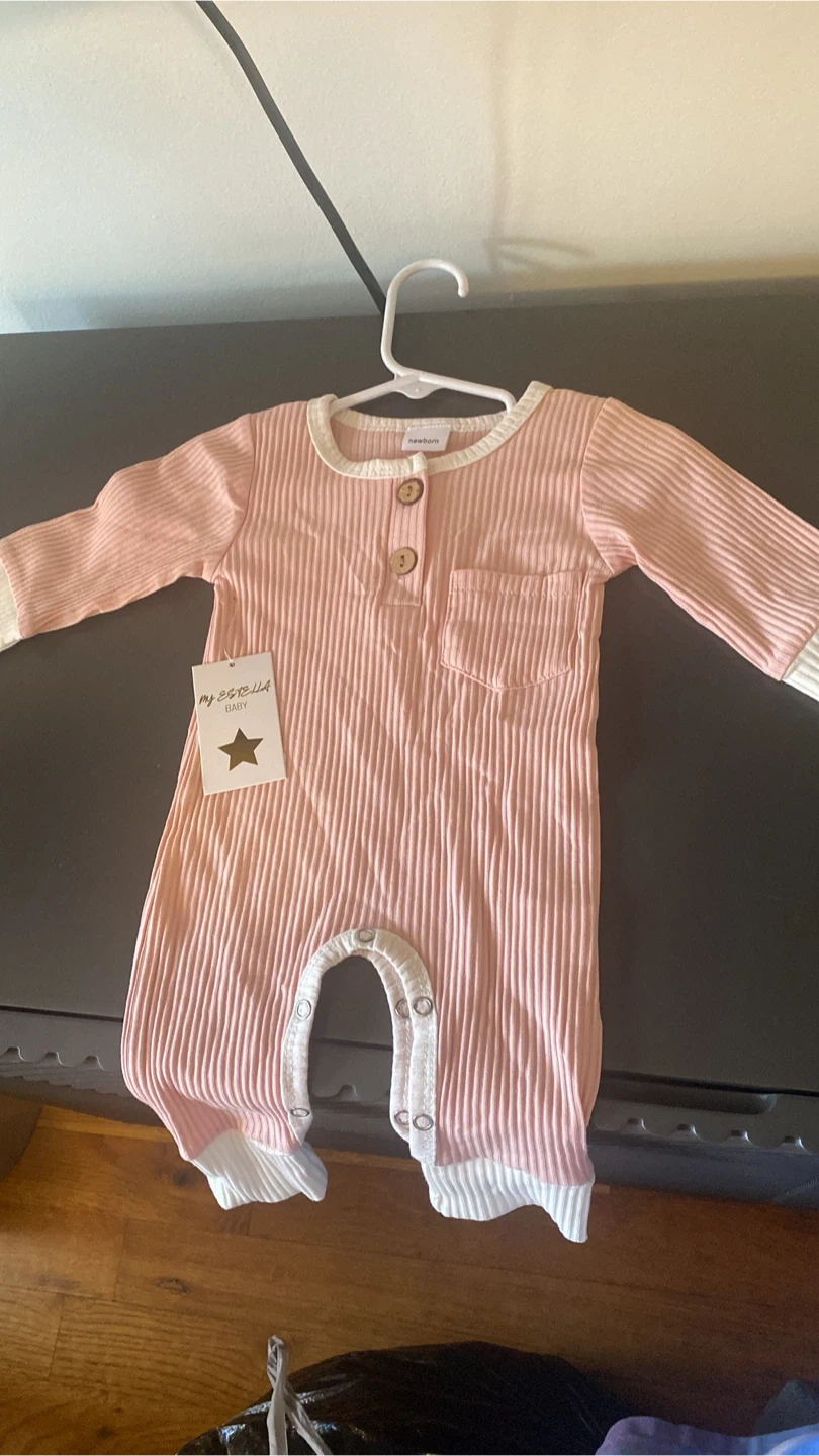 Selling a bundle of newborn baby clothes. Includes a variety of outfits, onesies, and a fuzzy jacket. All in great condition and ready for a new little one!