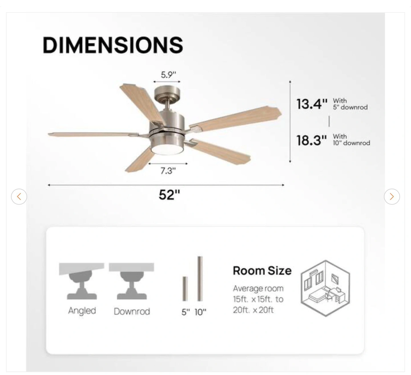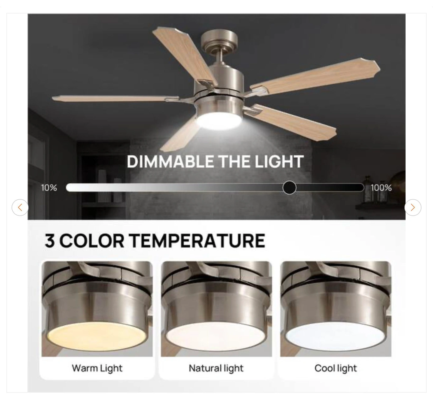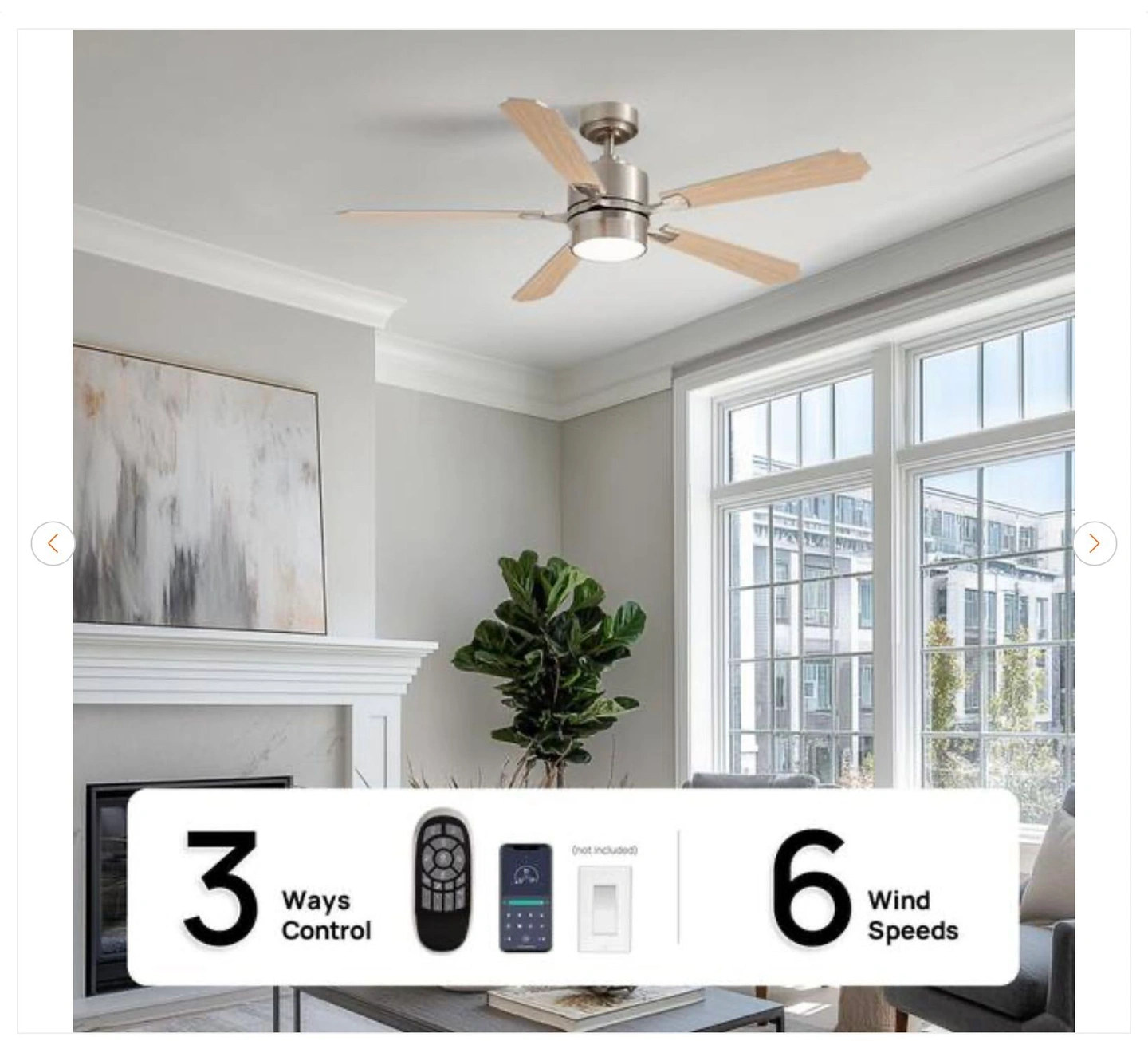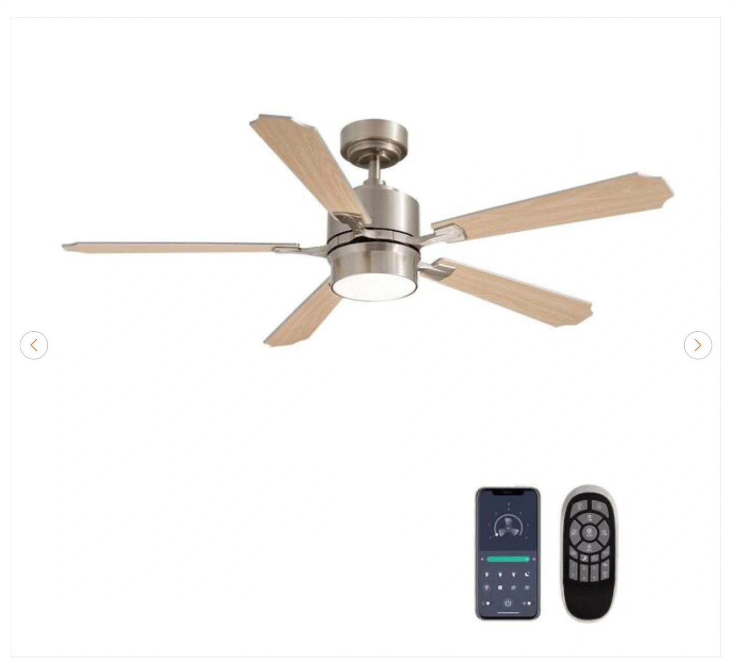 52 in. Indoor Brushed Nickel Ceiling Fan w/ LED Light & Remote