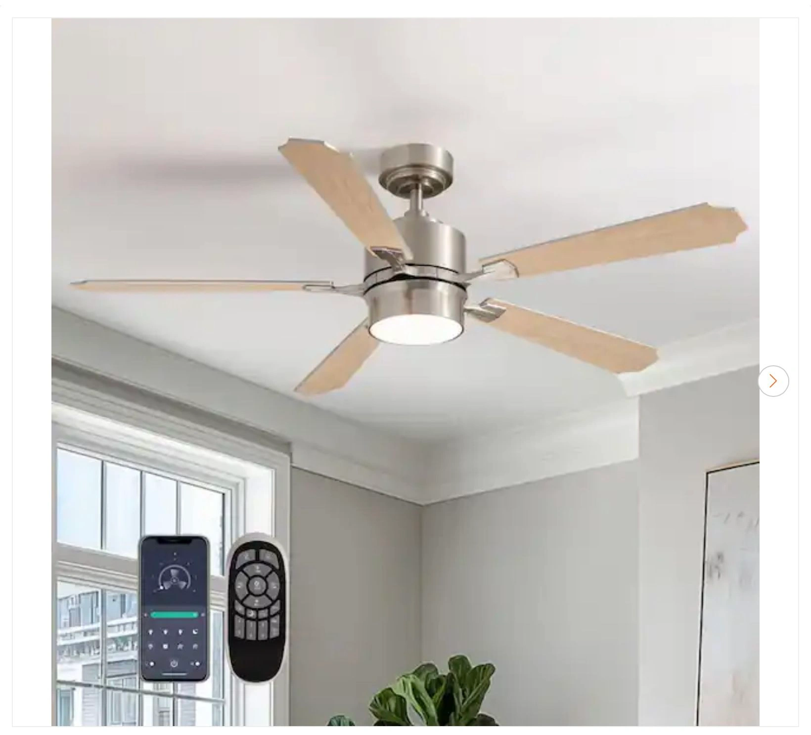 52 in. Indoor Brushed Nickel Ceiling Fan w/ LED Light & Remote