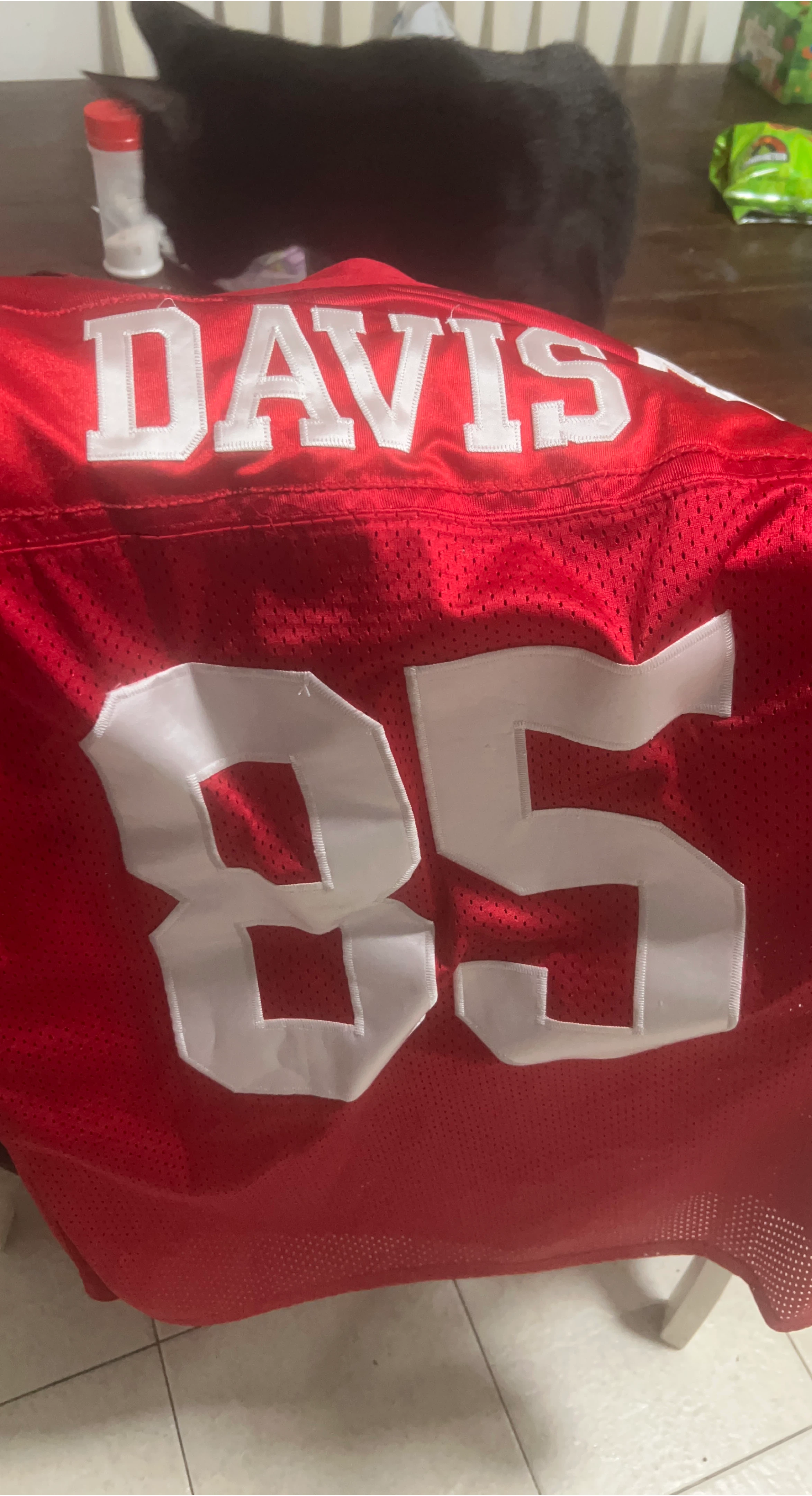 60Selling a red NFL Equipment San Francisco 49ers jersey with Davis and the number 85 on it
