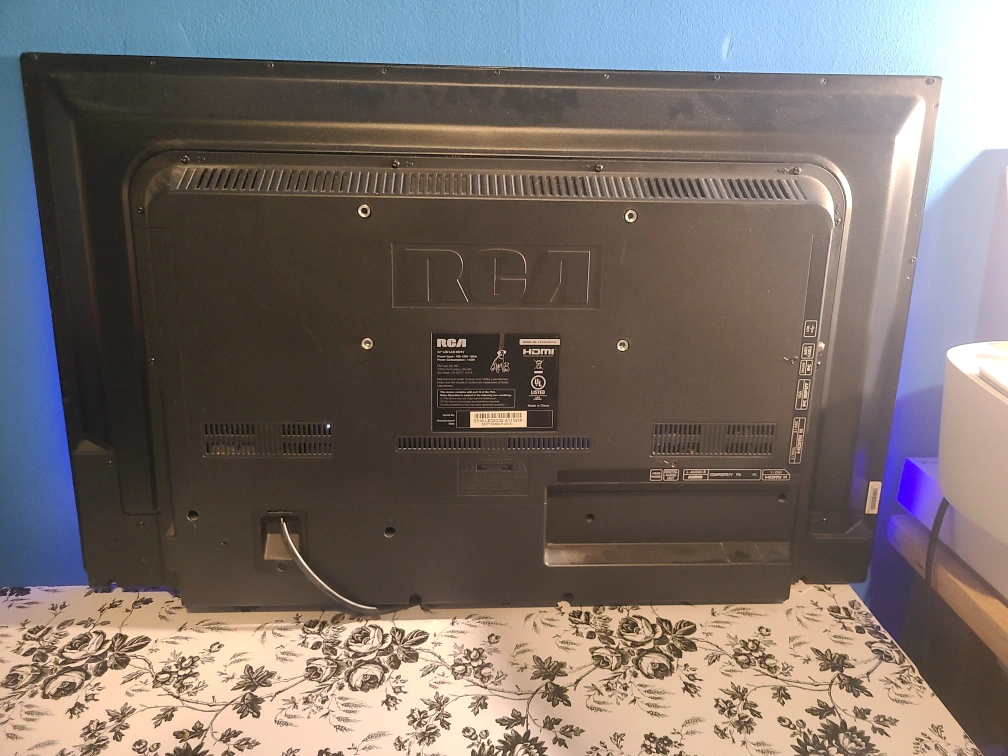 Selling an RCA TV that comes with a remote. It's in good condition and ready for a new home! Perfect for a bedroom or small living room. It is missing the legs. I have found it quite easy and convenient to secure it to furniture or tv risers as well.