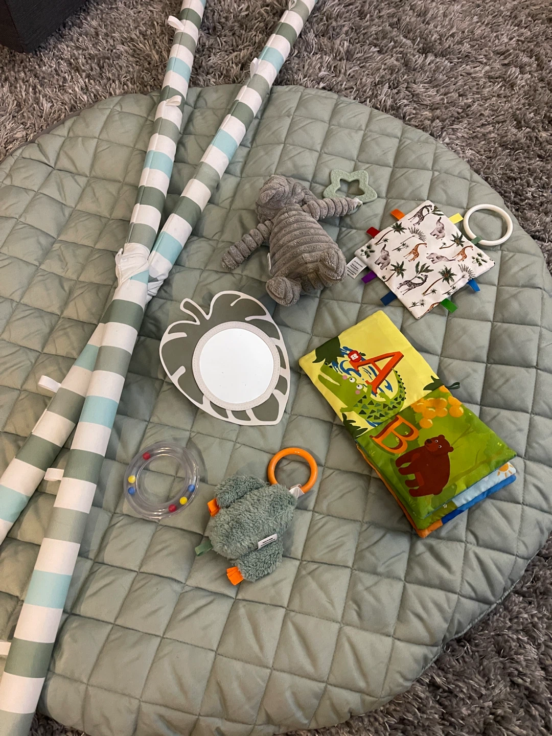 Selling a baby activity gym in great condition! It comes with a padded mat and several detachable toys to keep your little one entertained. The toys are designed to engage and stimulate your baby's senses. Originally bought for $49.99