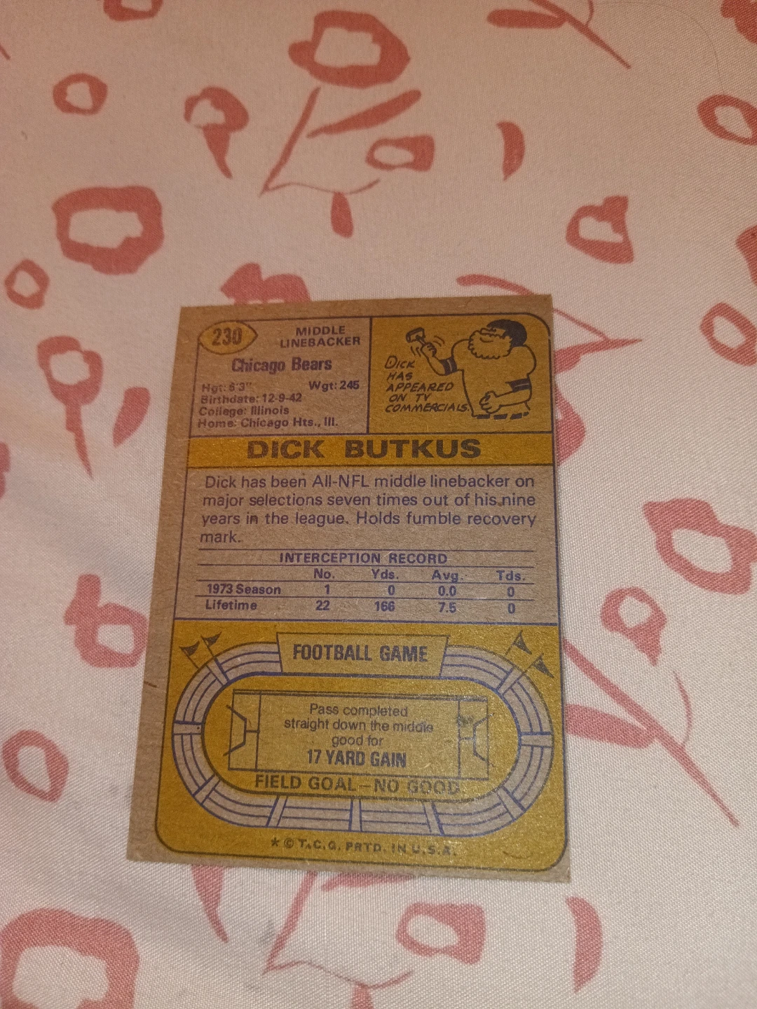 1974 Topps Dick Butkus Chicago Bears Football Card #230