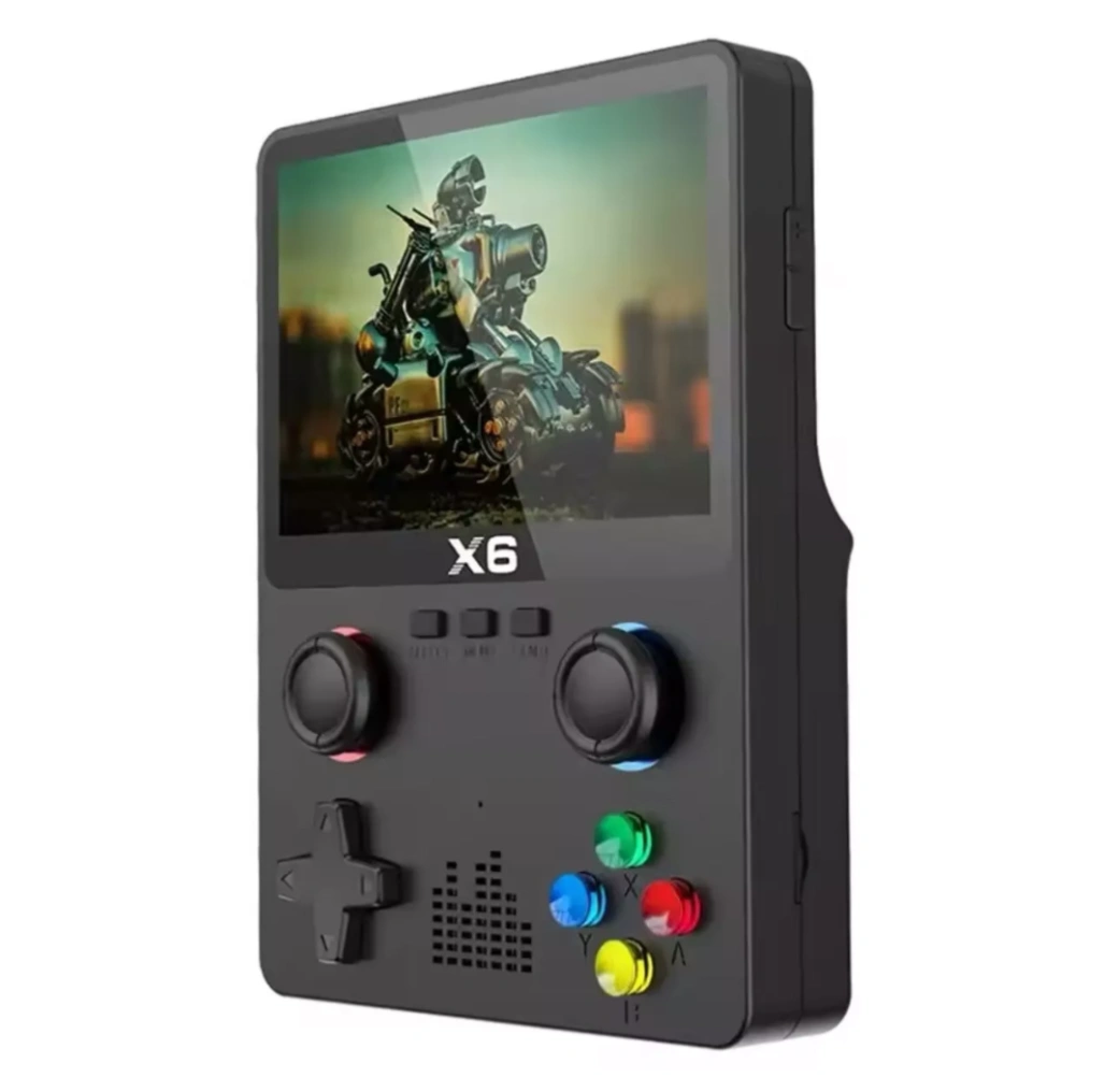 Portable gaming device. Features a color screen, directional pad, and multiple action buttons. Plays various retro games.