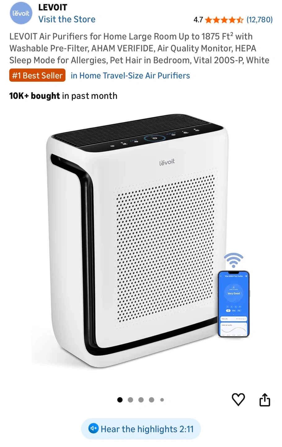Selling my Levoit Vital 200S-P Smart Air Purifier in excellent condition. Works perfectly and has been well maintained.
