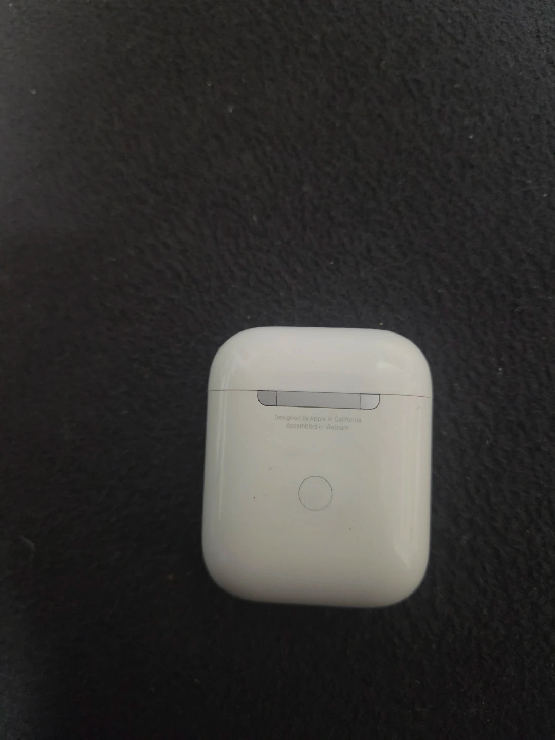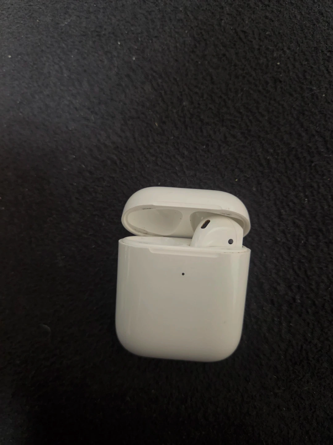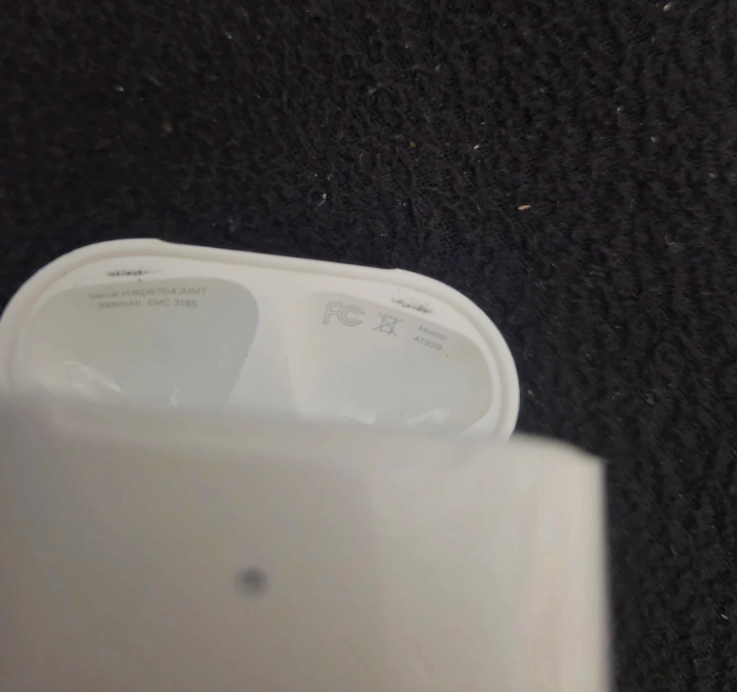This is a replacement charging case for Apple AirPods Pro. It's white and designed by Apple. Case includes original packaging information. with a hearing aid on the right side