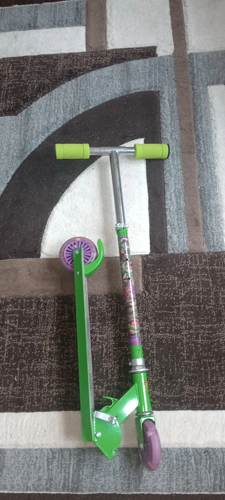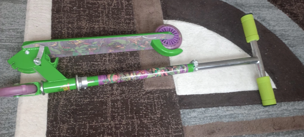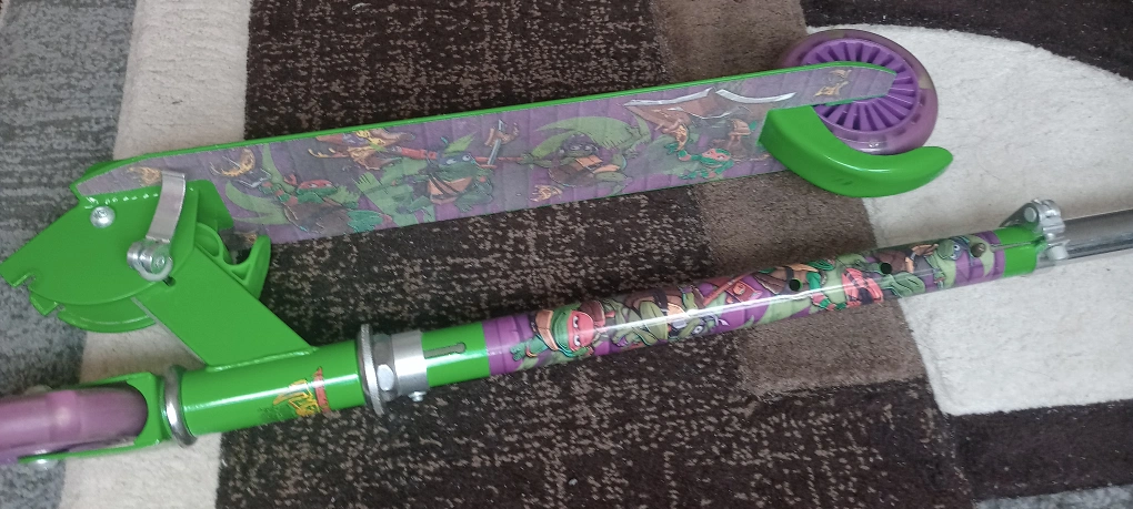 Selling a Teenage Mutant Ninja Turtles themed scooter! It's green and purple, perfect for any TMNT fan.