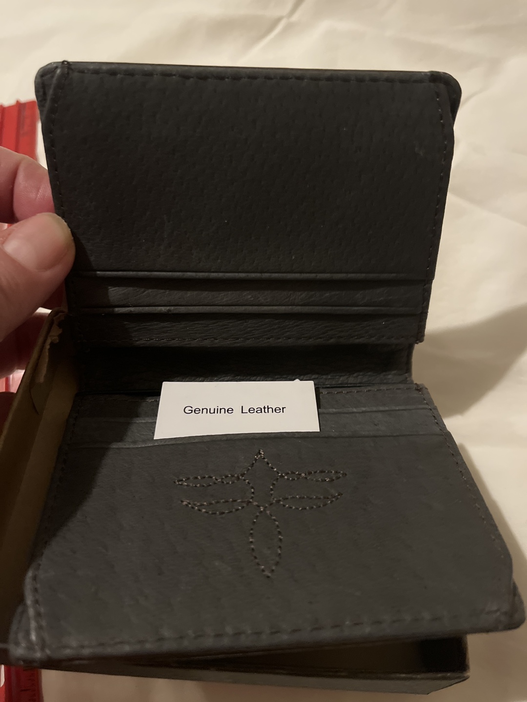 New Justin brand wallet. Genuine leather. Front pocket design. RFID blocking. Brown color. Embossed floral details. Slim design.