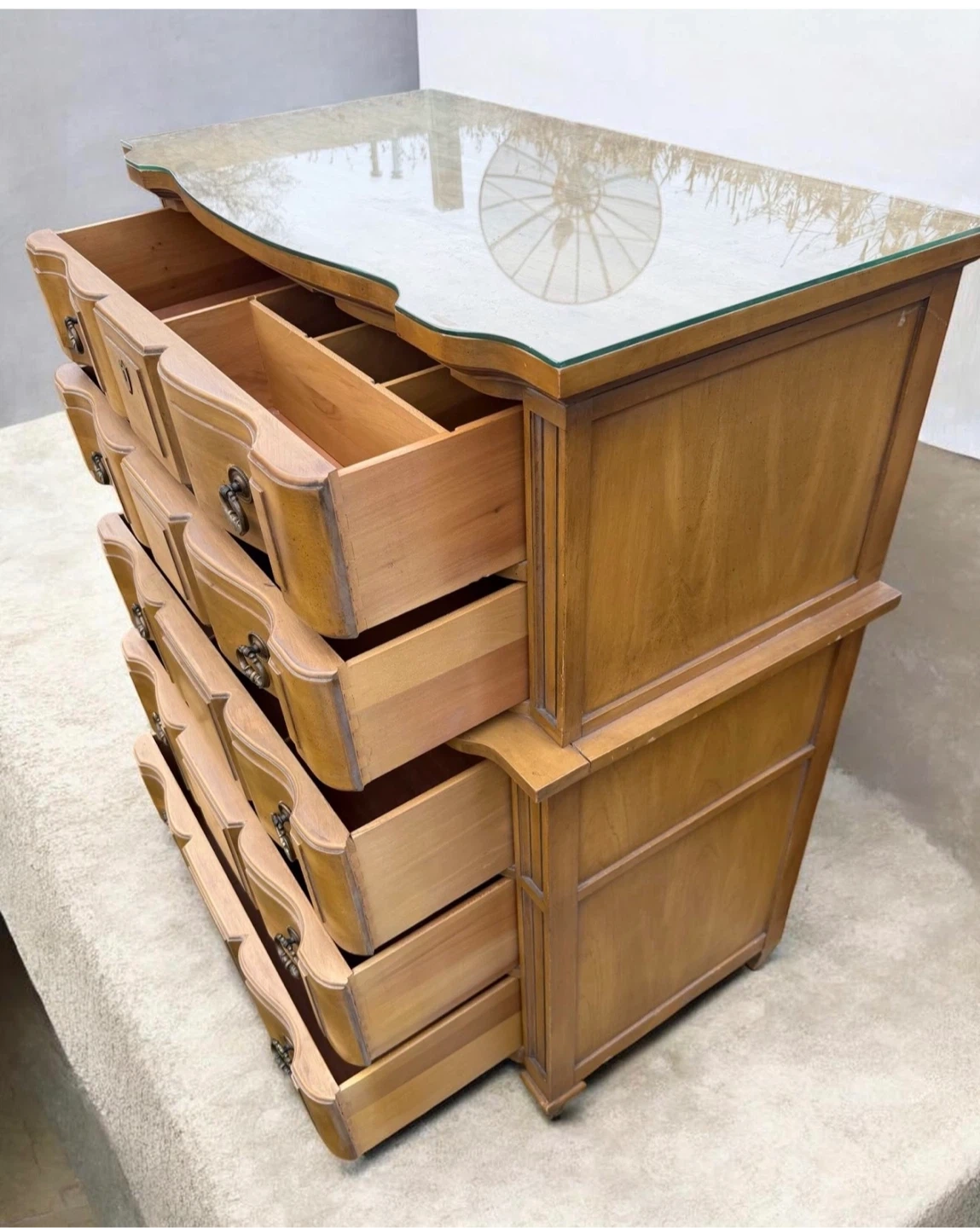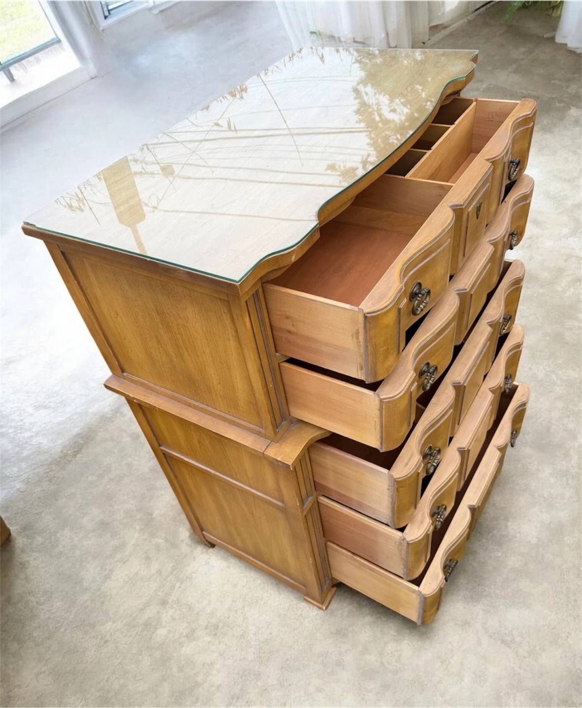 Vintage Wood Dresser with Glass Top