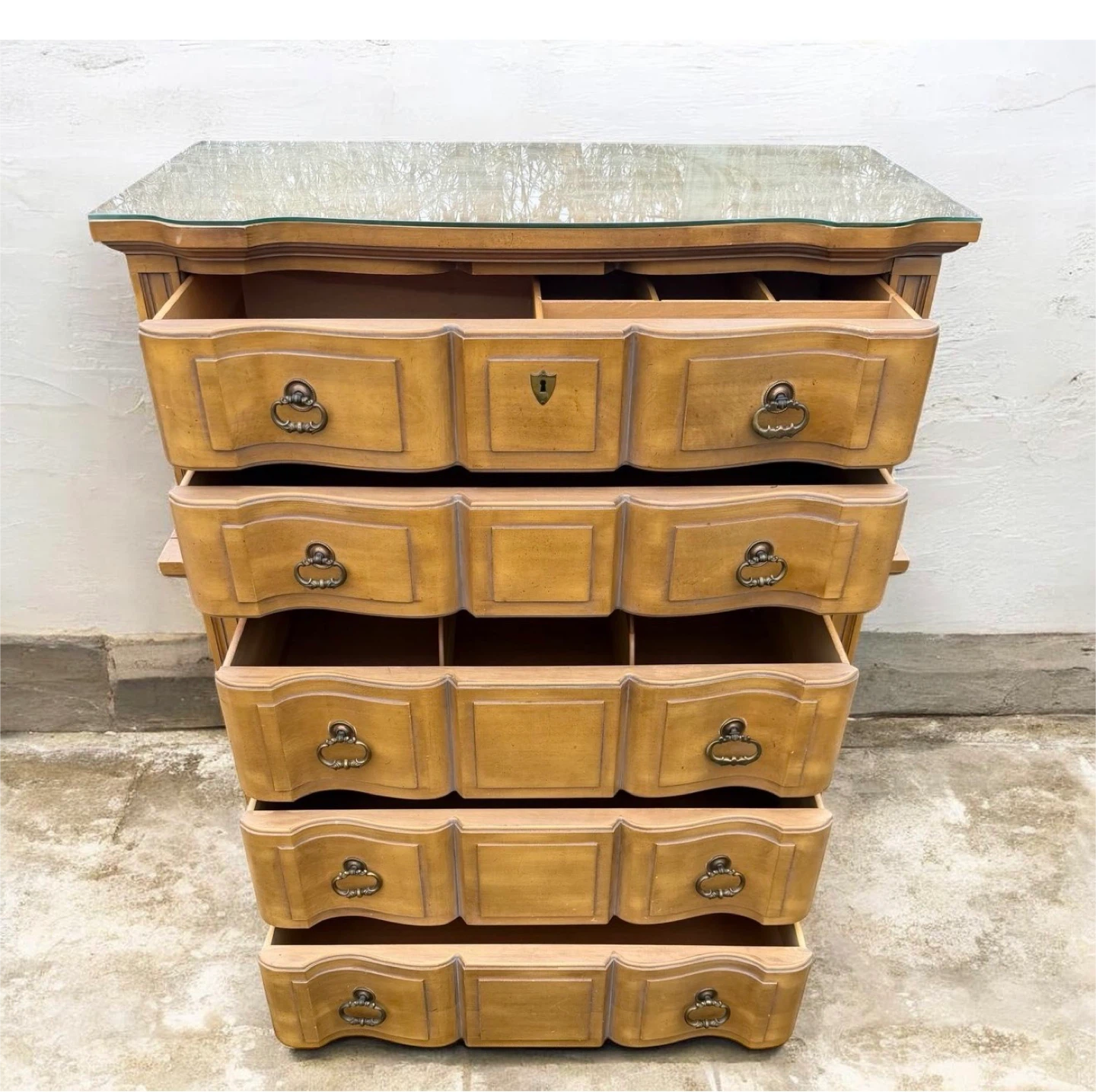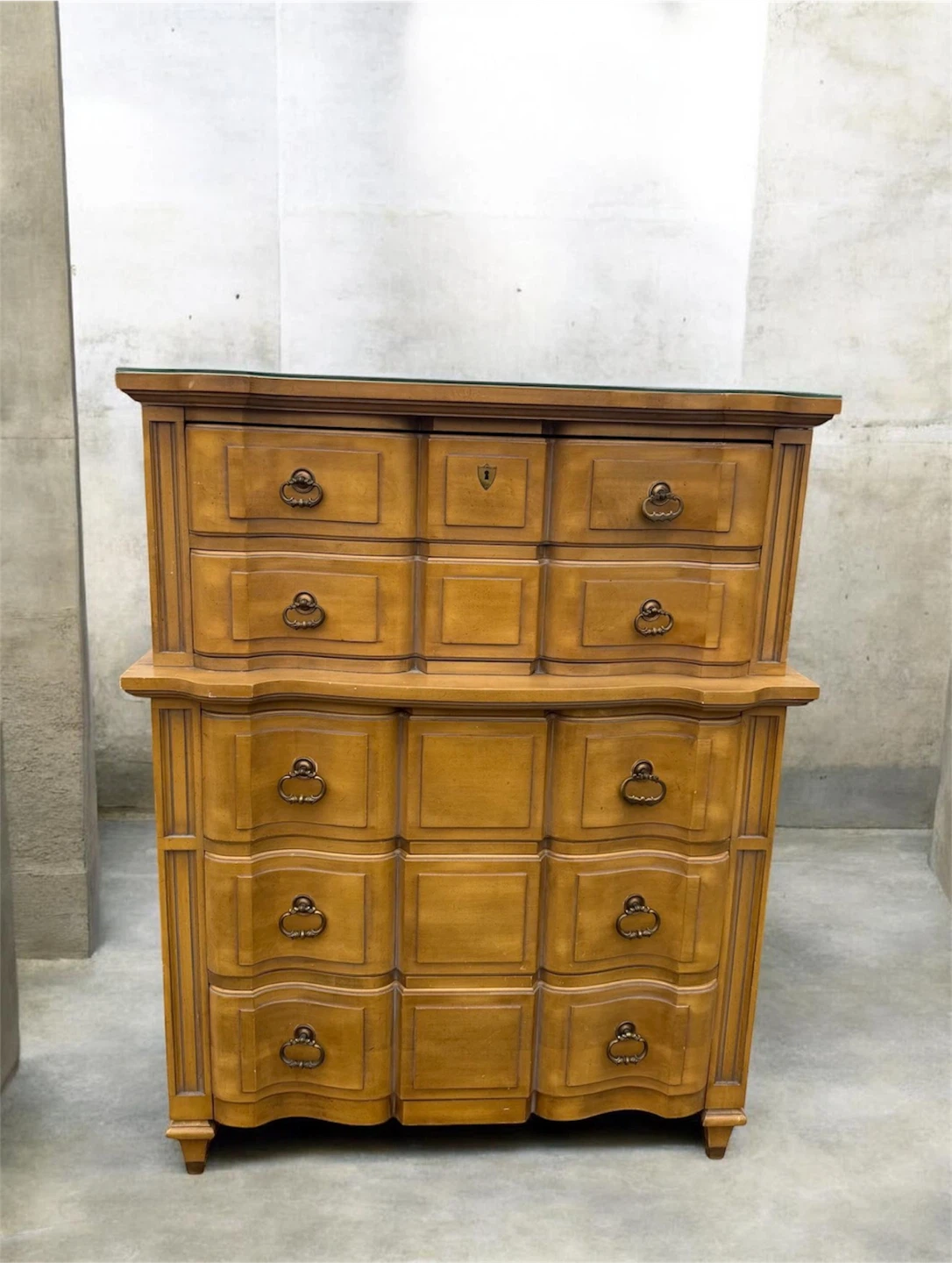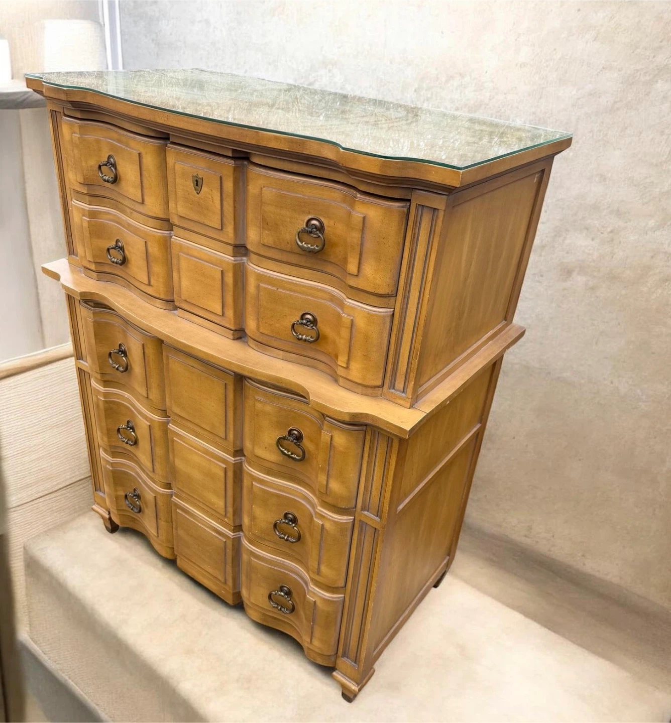 Vintage Wood Dresser with Glass Top