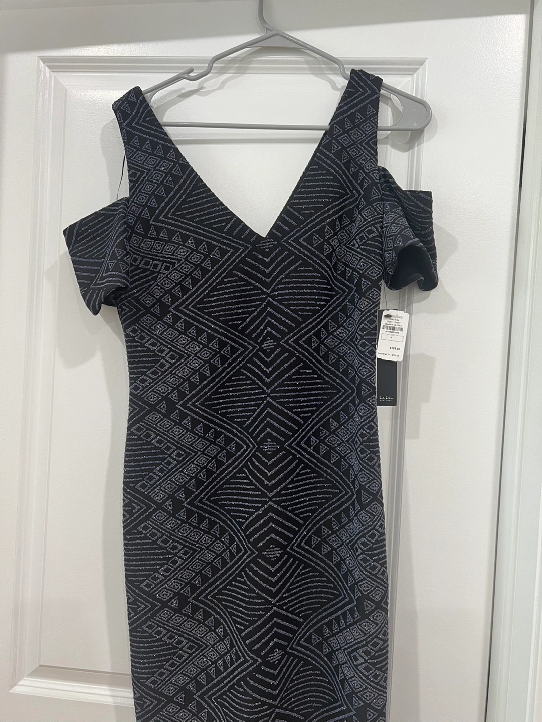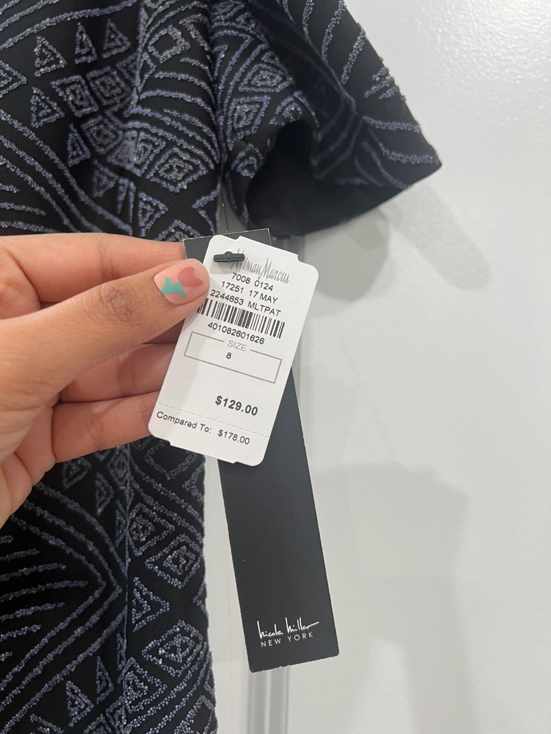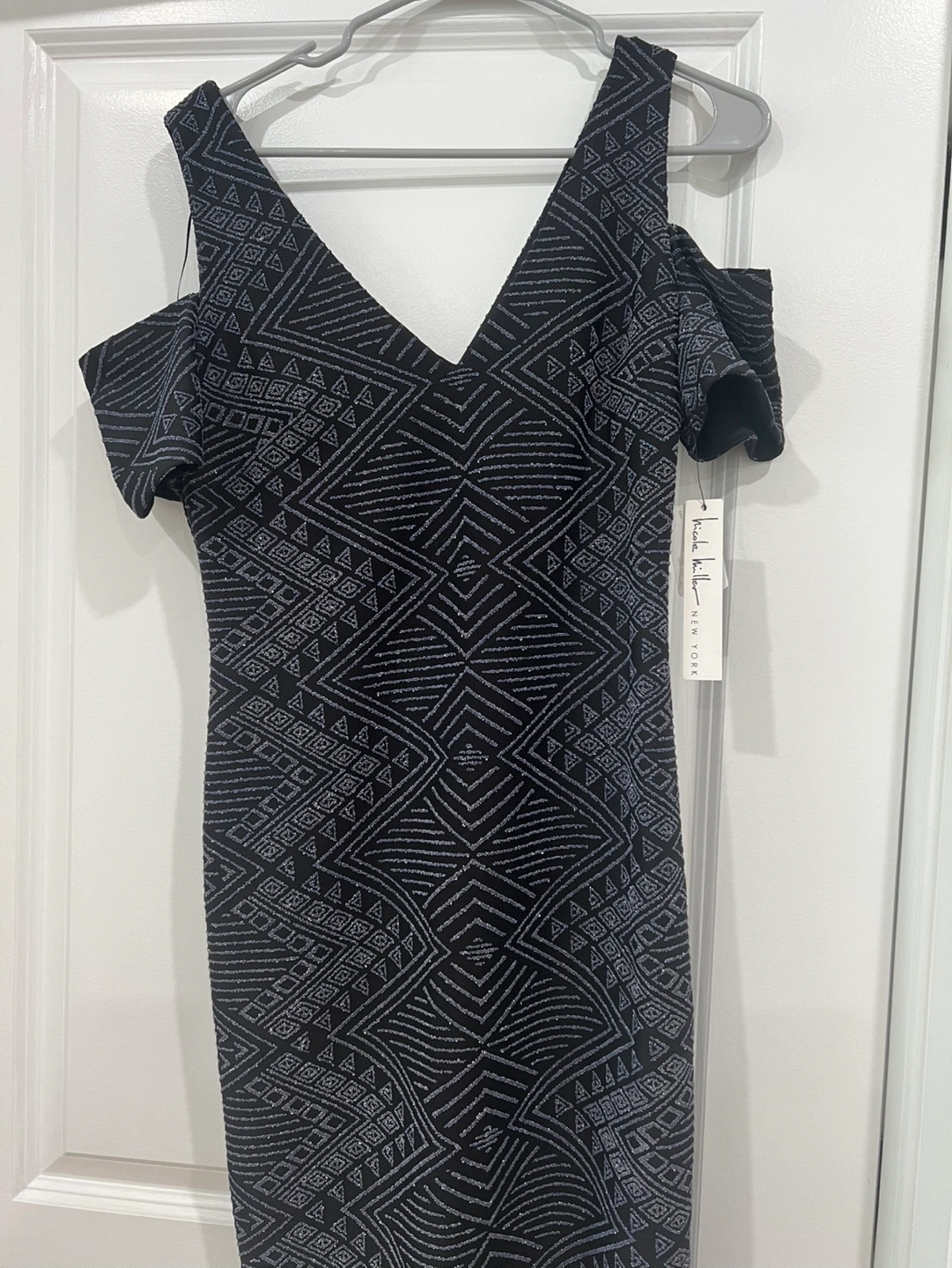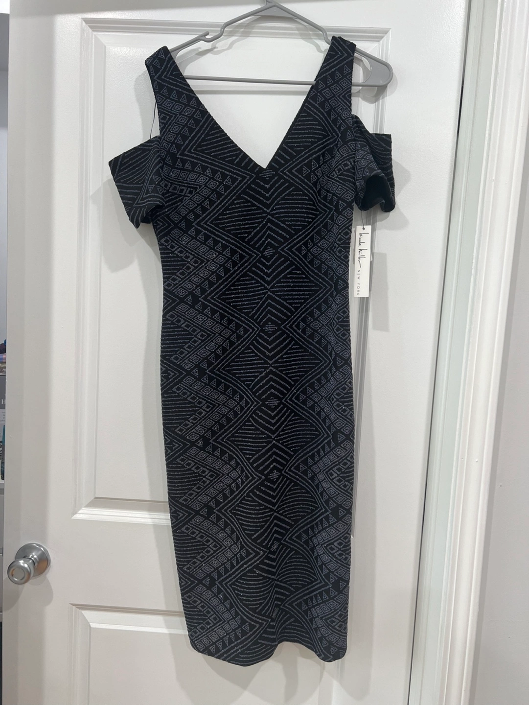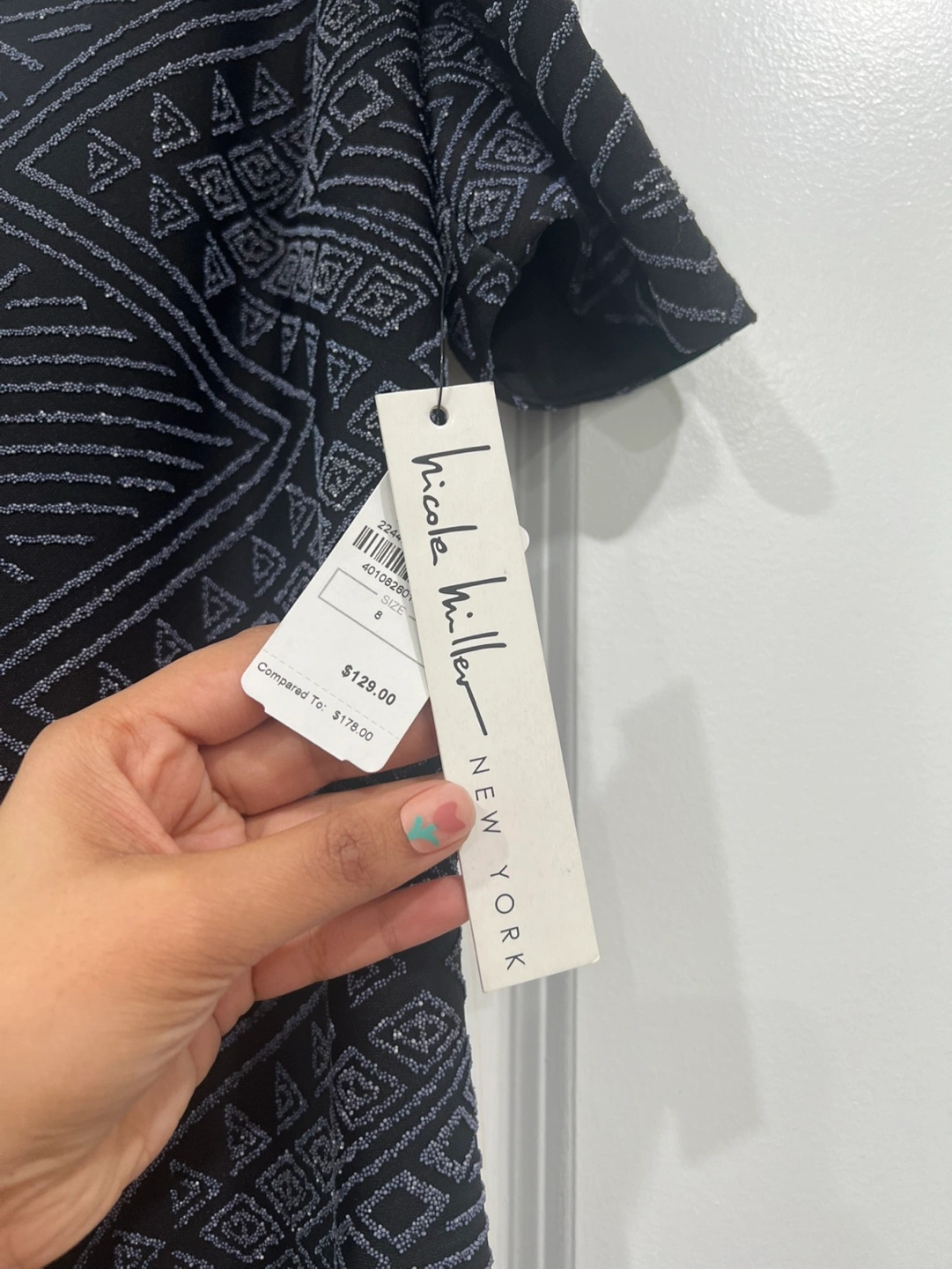 Nicole Miller Black & Silver Geometric Pattern Dress Sz 8