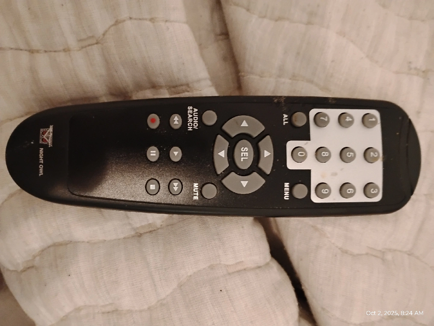 Selling a used Night Owl remote control. It has an audio search function, mute button, and number pad. Perfect if you need a replacement!