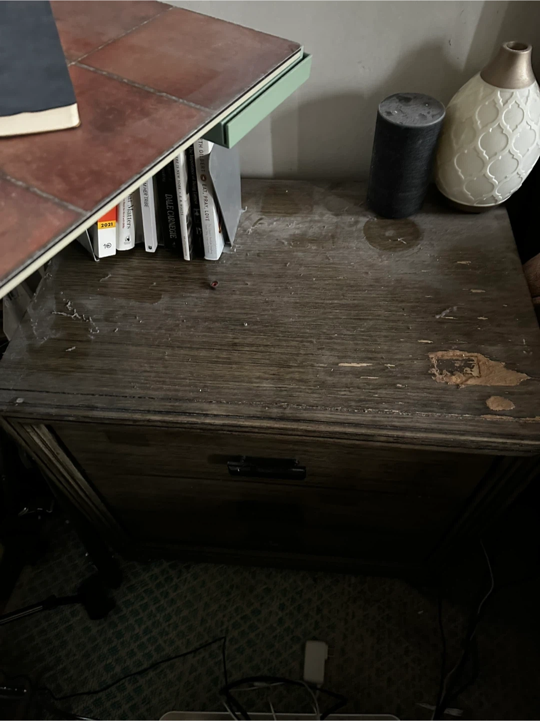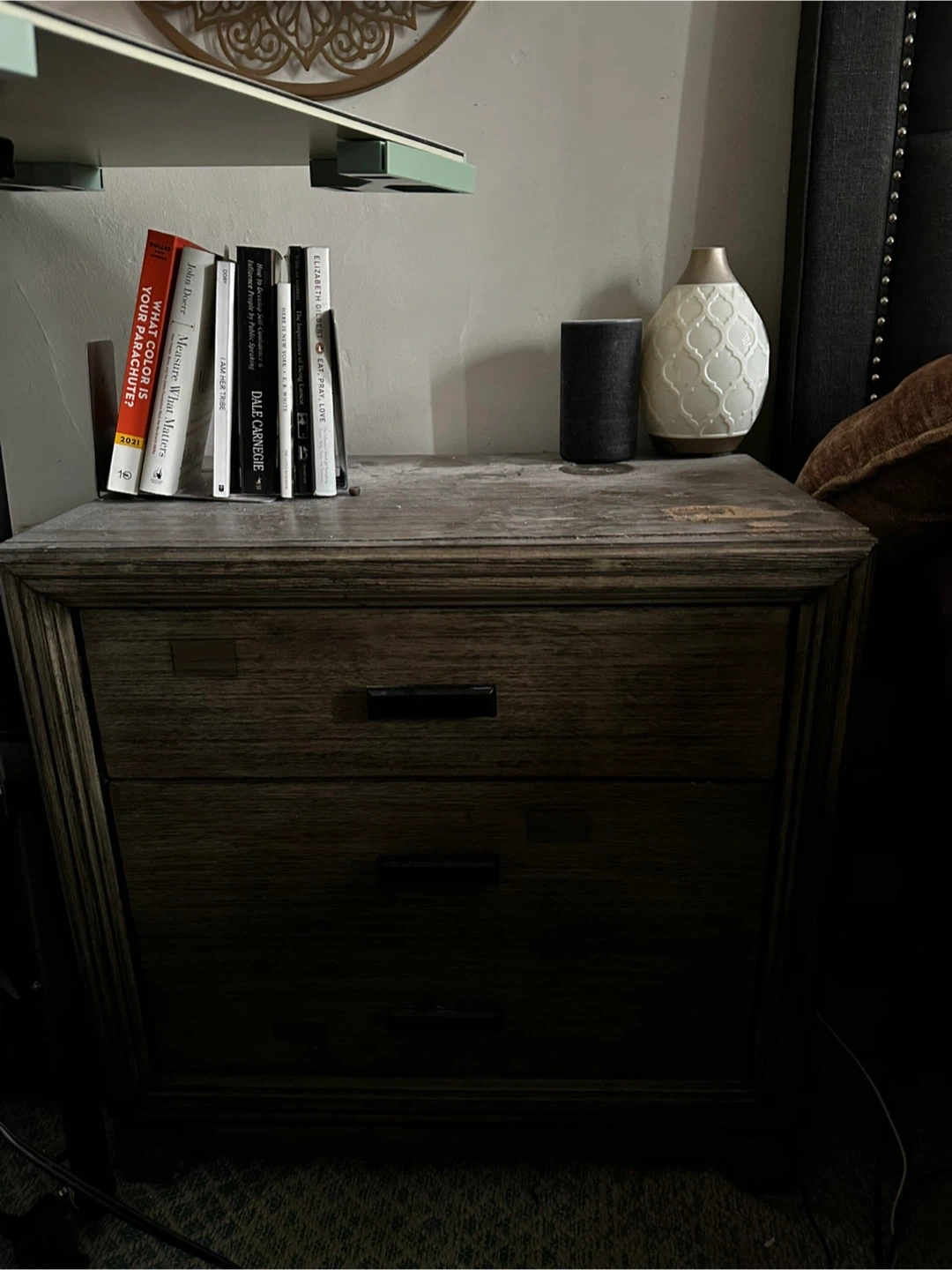 10I purchased this night table from Macys, years ago during the pandemic. It retailed at $300. I am selling it to create more space. Please note the only visible sign of wear is on the table. As seen in the photo. Measurements are as follows: 26” wide X 26” length 18” dimensions Top drawer 10” inside Bottom drawer is 14” inside Pickup near Astoria Ditmars, 4th floor walk up.