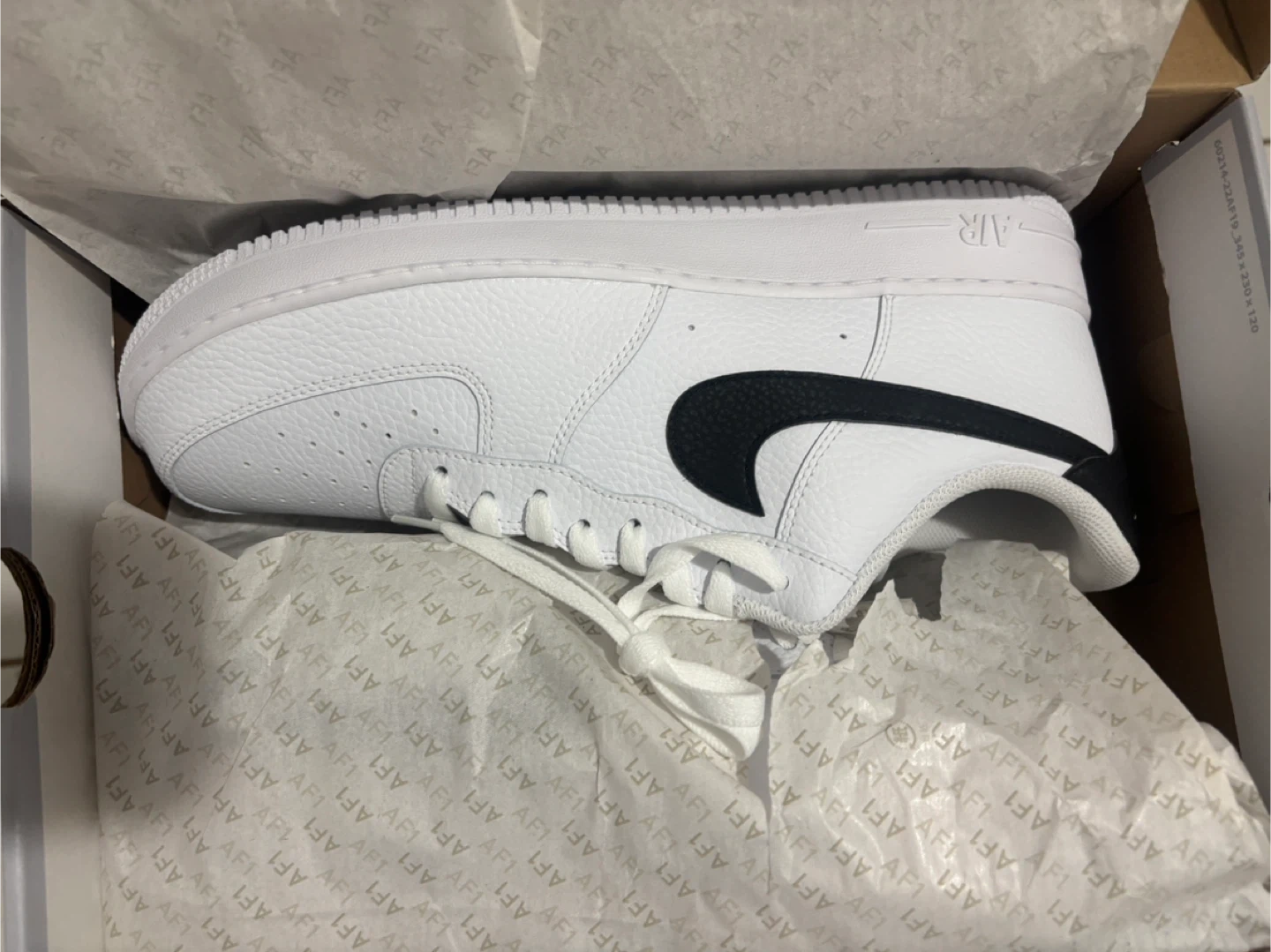 Selling a pair of Nike Air Force 1 '07 in white and black. The size is US 13. Comes with the original box
